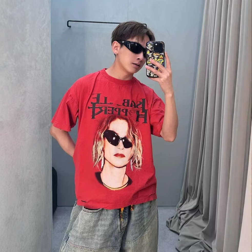 正しいバージョン 2025 夏新作 Paris B アートワーク 直噴プリント メンズ レディース OS ルーズ半袖 Tシャツ