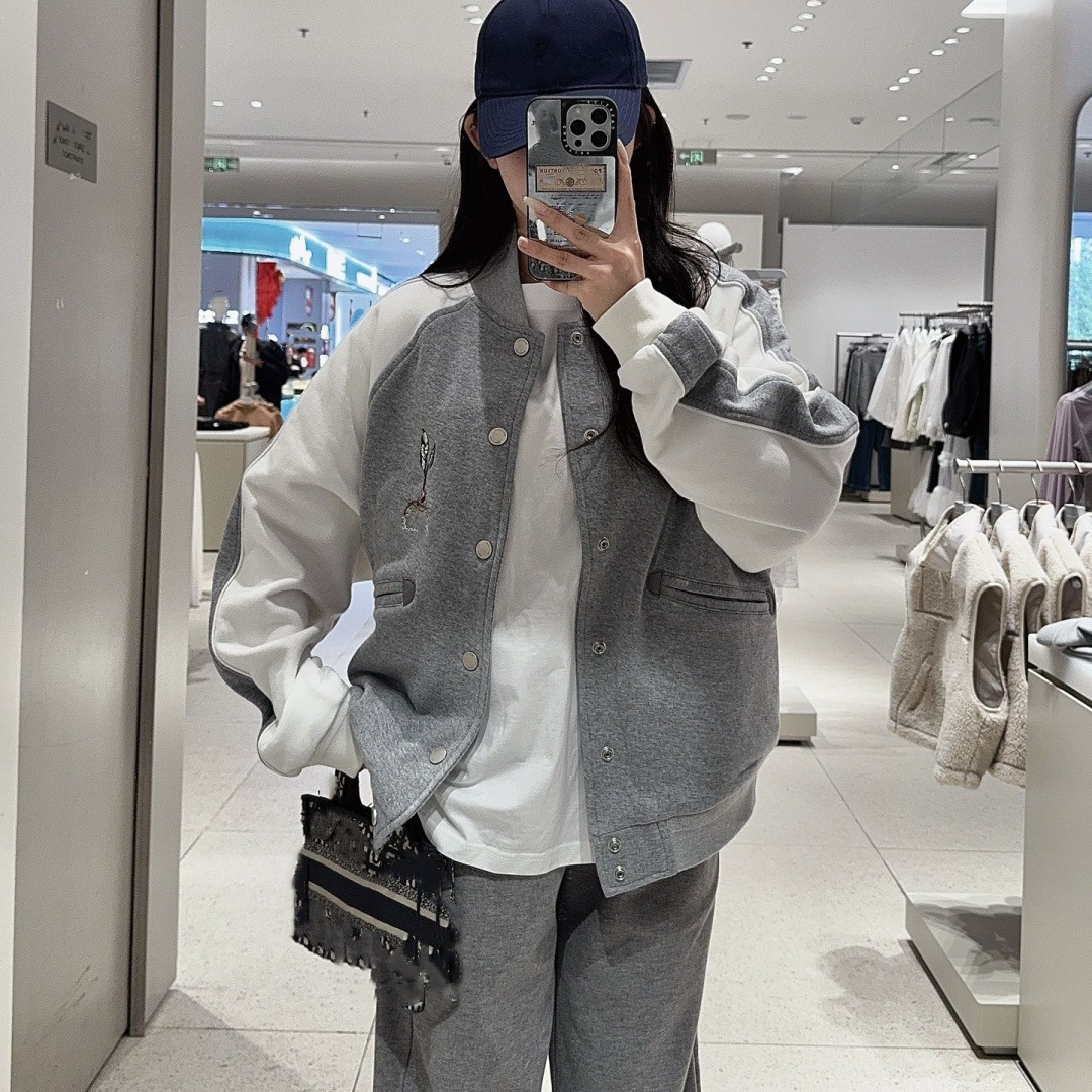 外国貿易クロスボーダーオリジナル高品質DIホーム新作スズラン刺繍ステッチコントラストジャケット野球ユニフォームジャケット男性と女性用