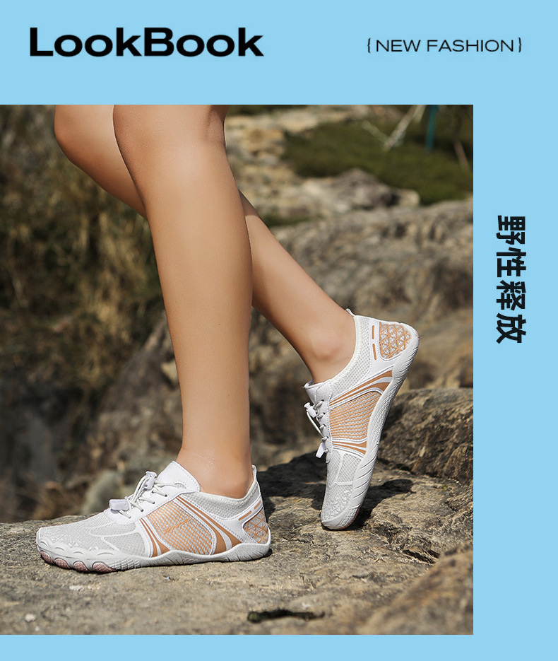 新しいアウトドア 5 本指ハイキングとリバートレースシューズ、カップル用、ビーチ用通気性のある水泳シューズ、スポーツ、ランニング、速乾性