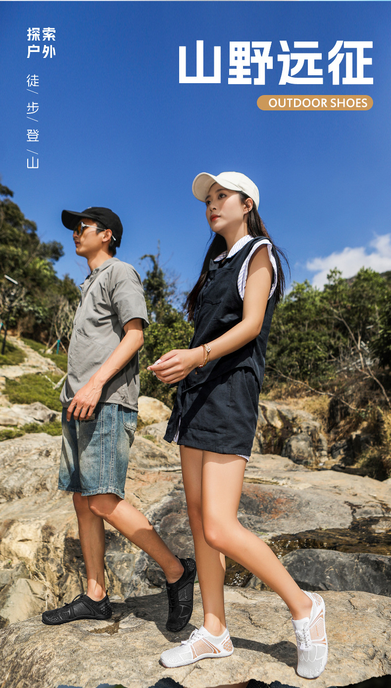クロスボーダーアウトドアハイキングシューズ、メンズ裸足シューズ、レディースビーチシューズ、ウェーディングシューズ、滑り止めリバートレースシューズ、5本指ハイキングシューズ