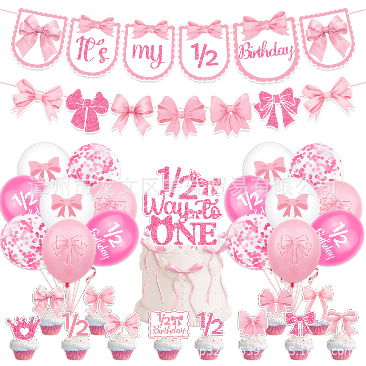 半岁1/2周岁蝴蝶结生日主题派对装饰品横幅蛋糕插旗气球派对套装