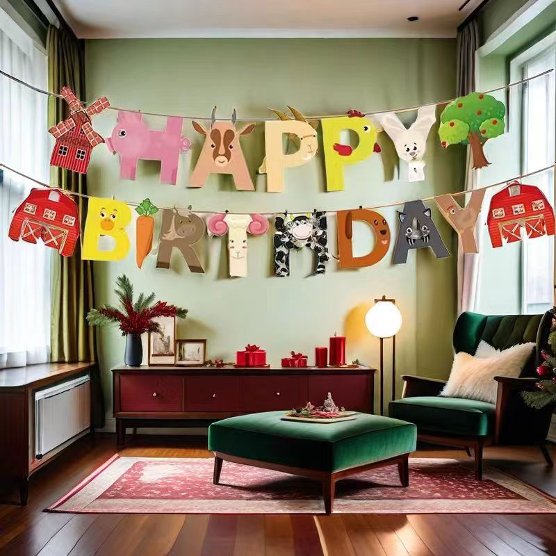 跨境现货横幅拉旗主题 儿童派对生日聚会装饰背景布置拉旗套装用