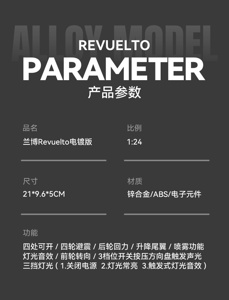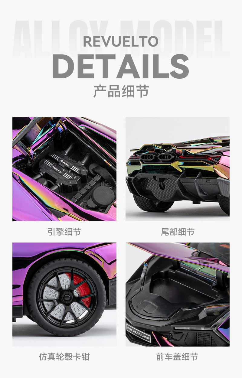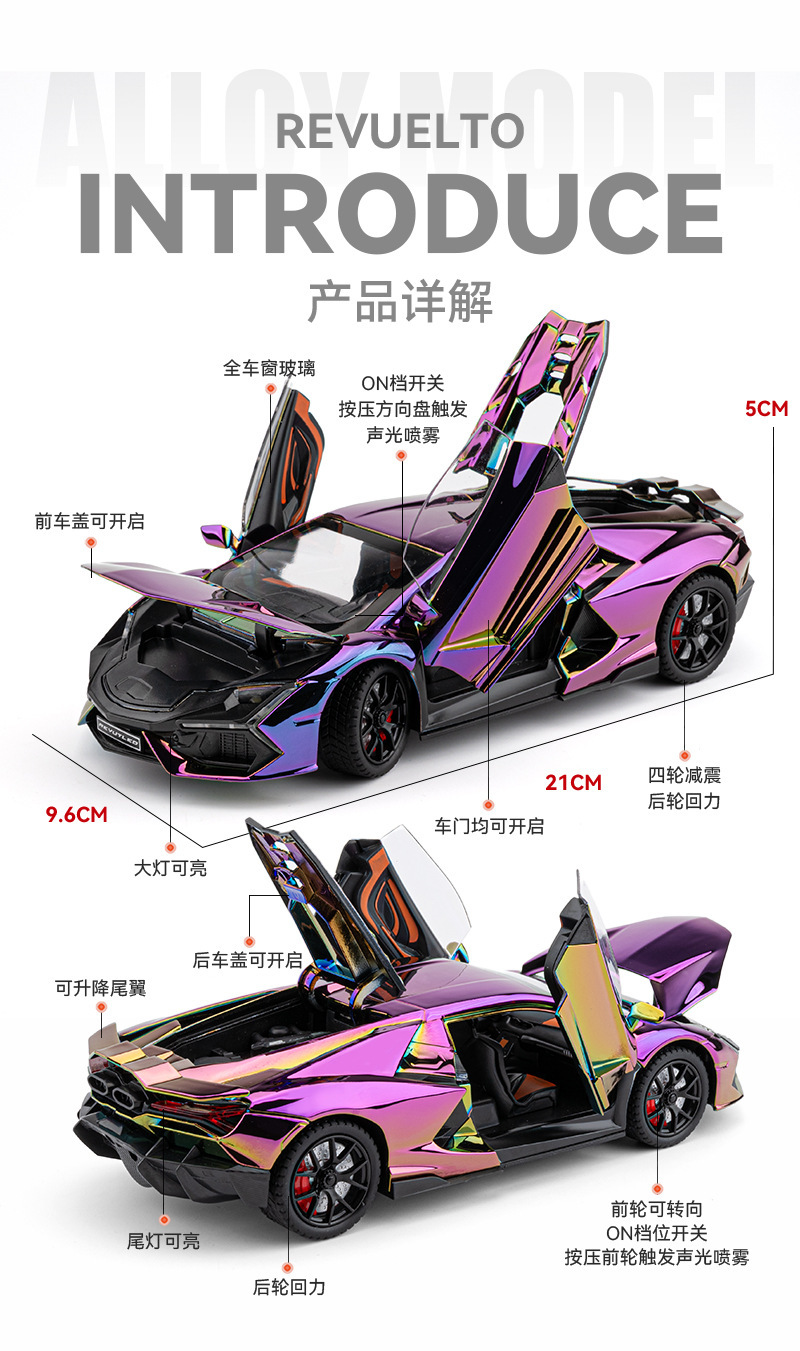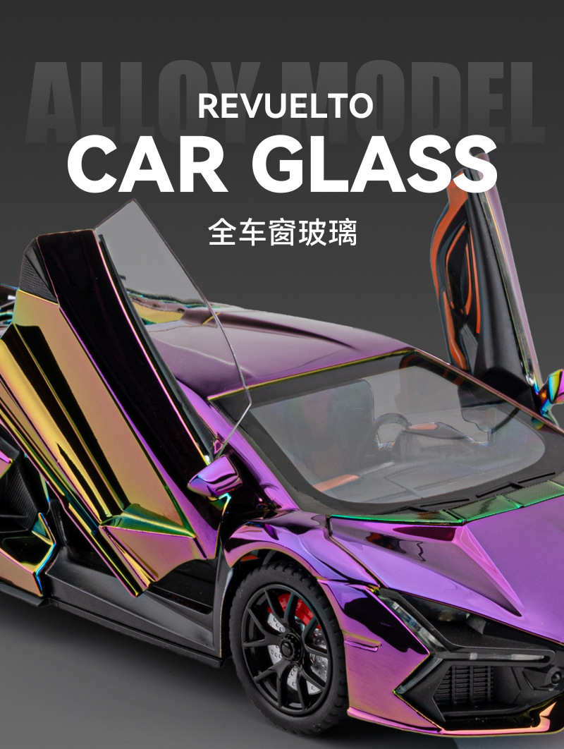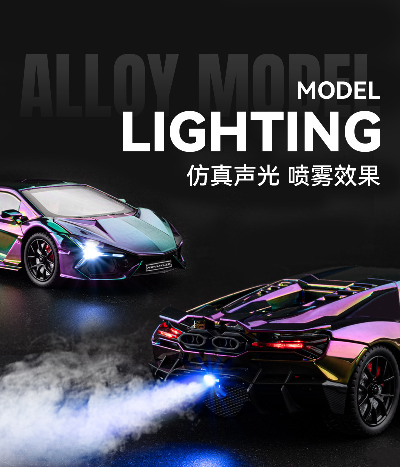 Chenzhi 合金車モデル 1:24 ランボルギーニ Revuelto スプレー電気メッキバージョンプルバックおもちゃの車の効果音モデルドロップシッピング