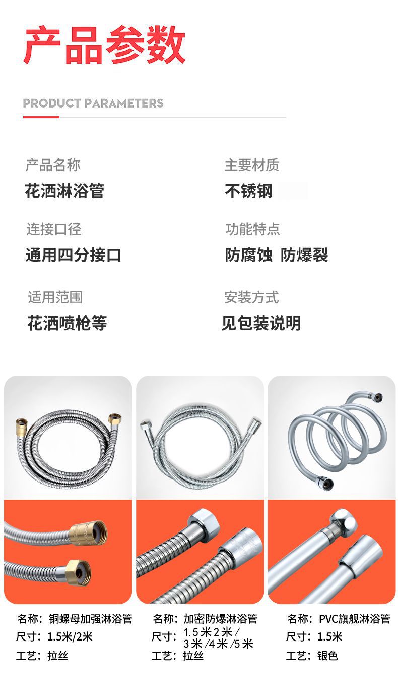 シャワー管増圧シャワーホース家庭用4分防爆水管シャワー管増厚高圧シャワーホース