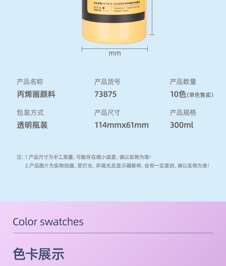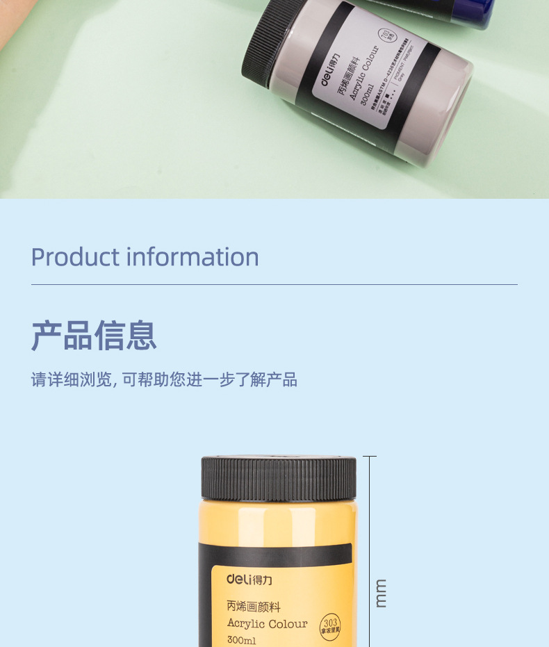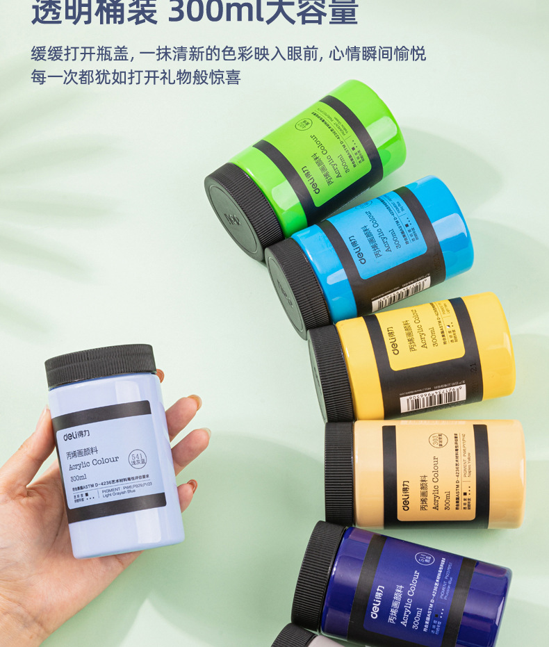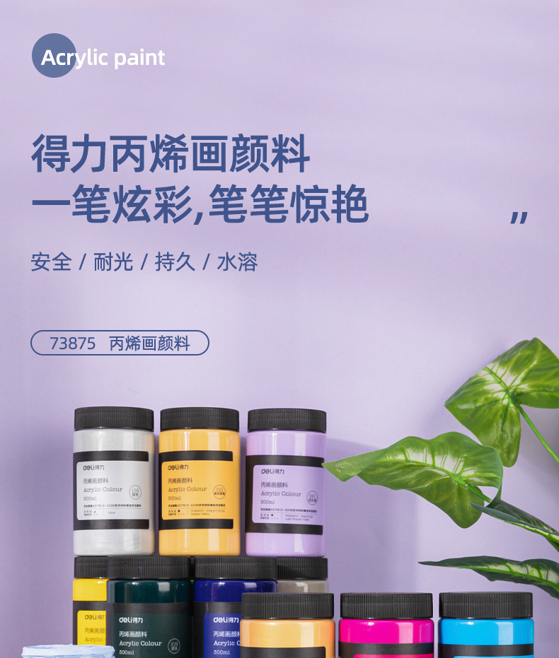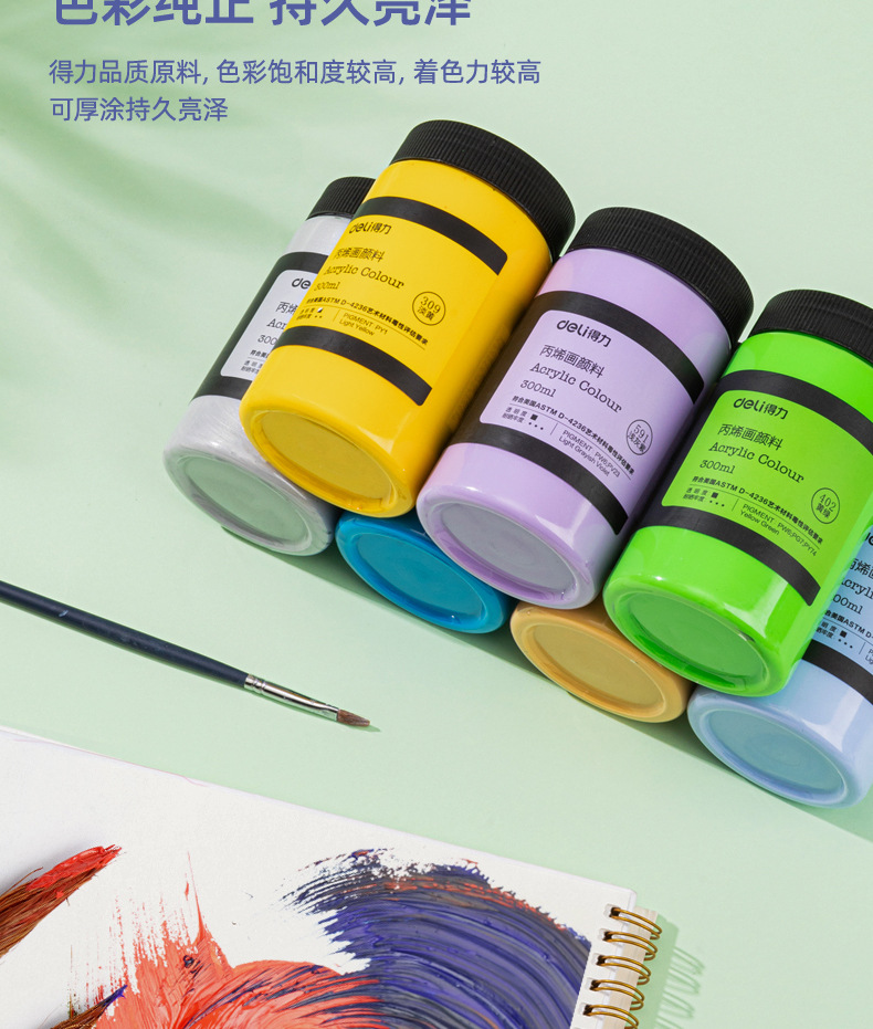 得力73875アクリル顔料300ml美術芸術彩色壁絵手描きdiyポスター落書き顔料