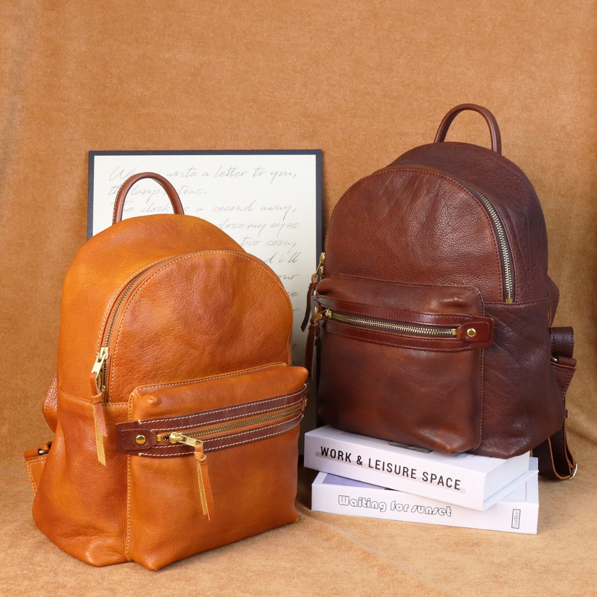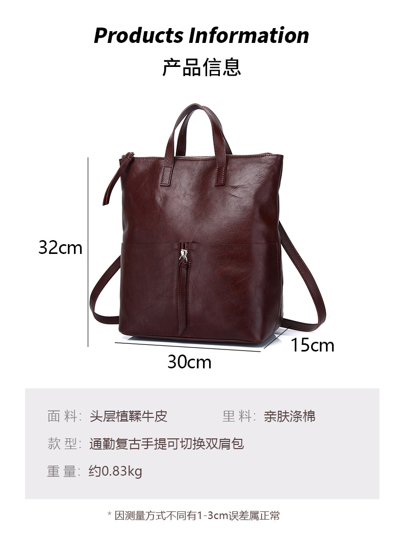 新款复古头层植鞣牛皮大容量多功能旅行背包百搭日常通勤双肩包女