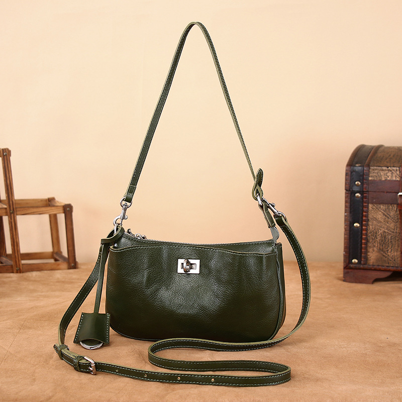 シンプルで万能な新作第一層植物タンニンなめし牛革ショルダー脇斜め掛け携帯電話バッグスモールバゲットバッグ24087