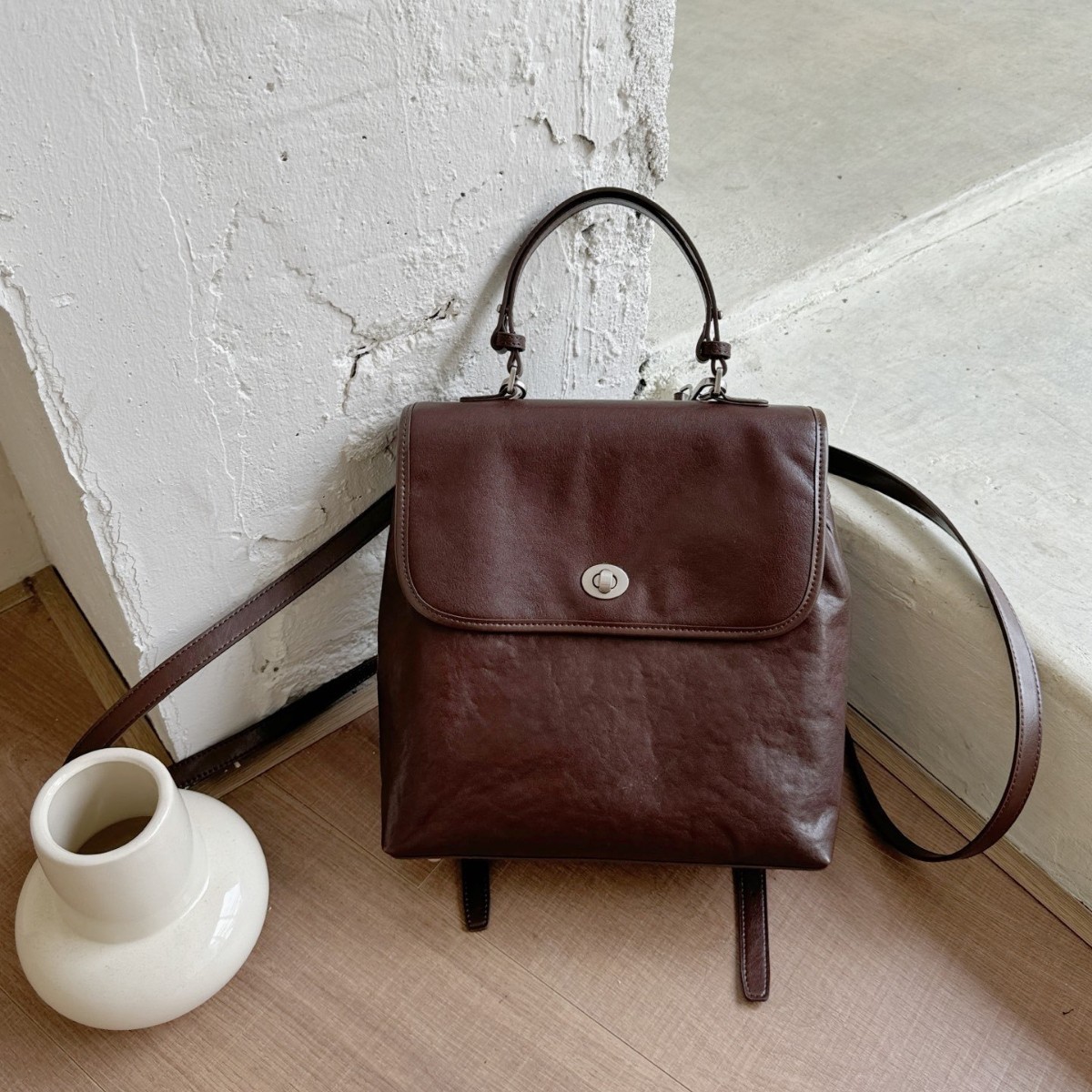 レトロ植なめし牛革ランドセル女性2025年新型シンプルな高級感ハンドバッグ