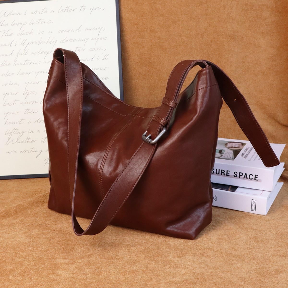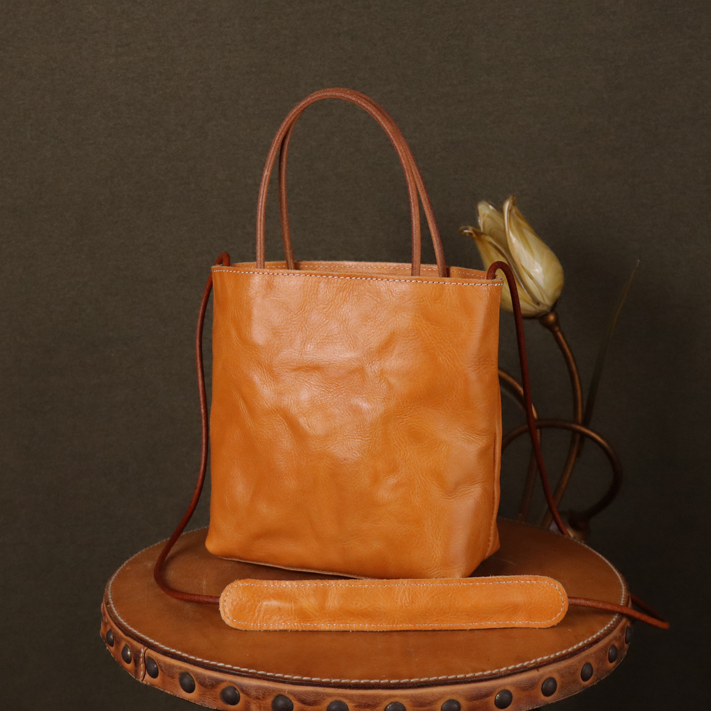 J6 植物タンニンなめし牛革シンプルレトロ高級バケットバッグ本革多用途カジュアルショルダークロスボディレディースバッグ 6846