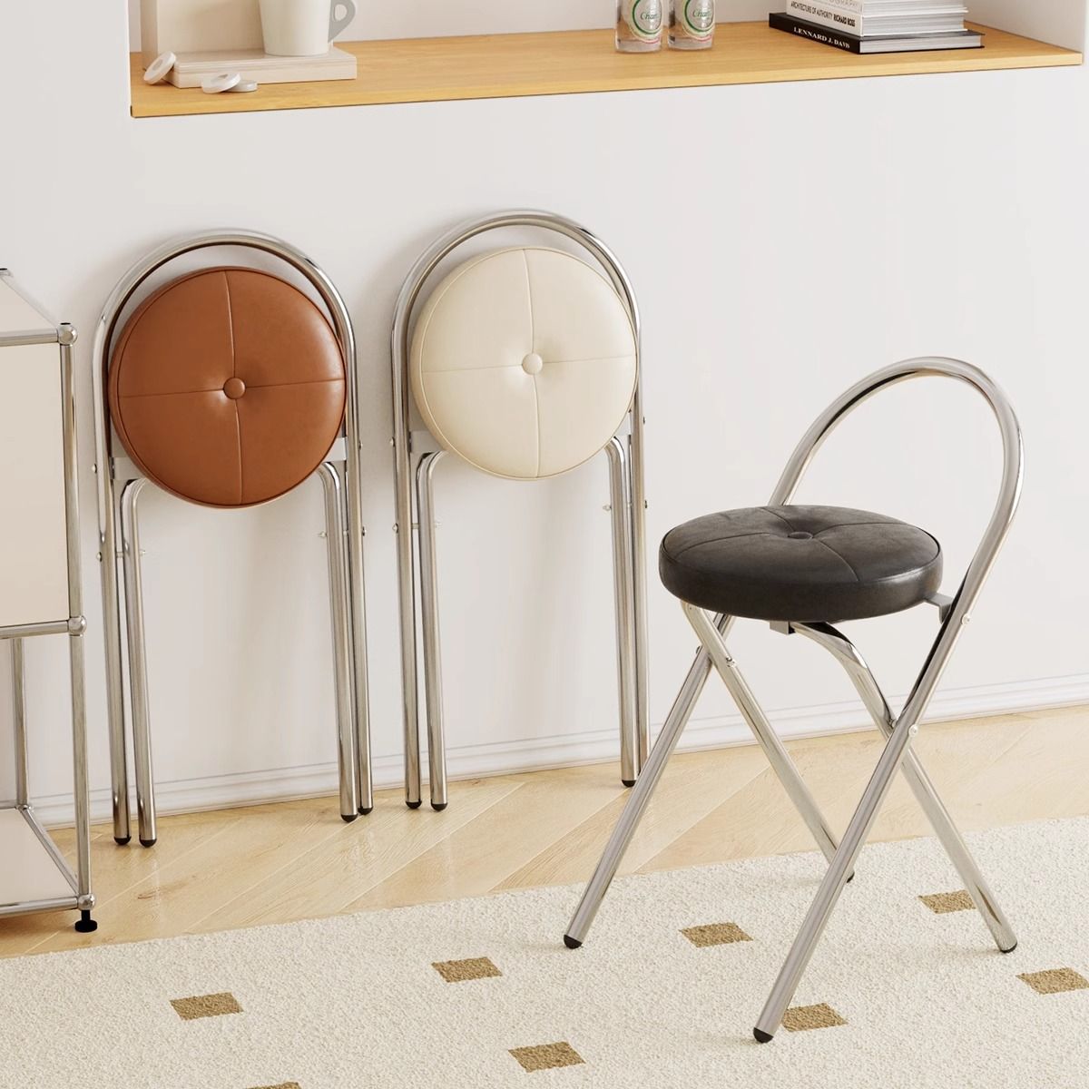 软包餐椅折叠藤编中古风小户型家用感餐桌椅子网红不锈钢凳子