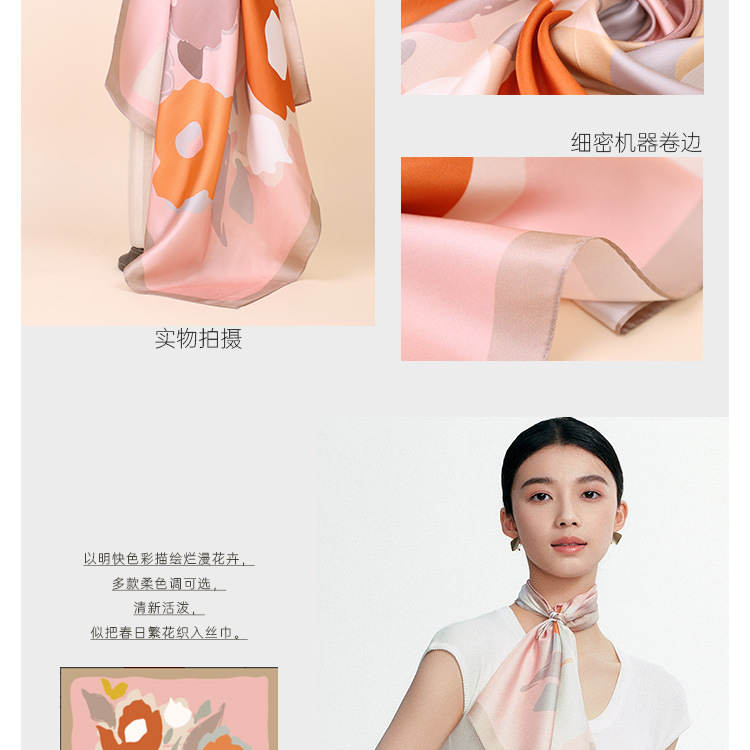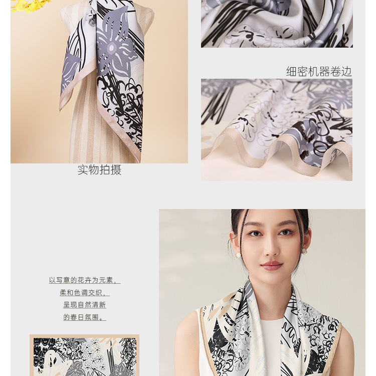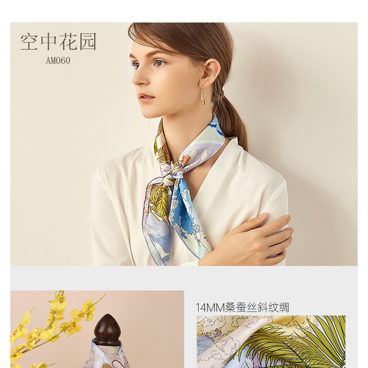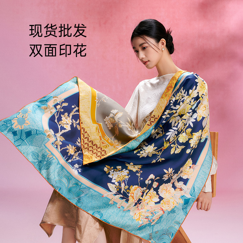 25年新作シルクスカーフ、高級100%桑蚕糸スカーフ、工場在庫卸売、花柄シルクお土産