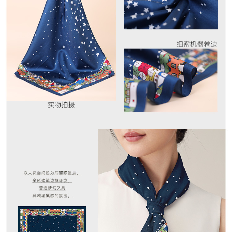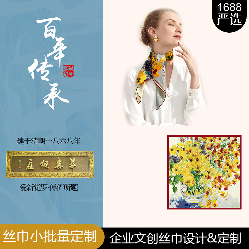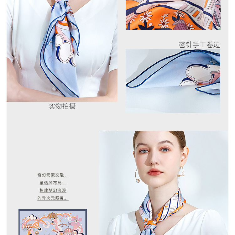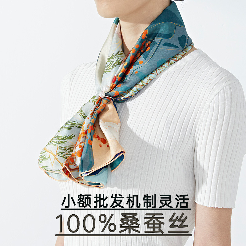 両面プリント65cmシルク中小スカーフ企業プレゼント卸売り100% 绢糸スカーフメーカー代加工