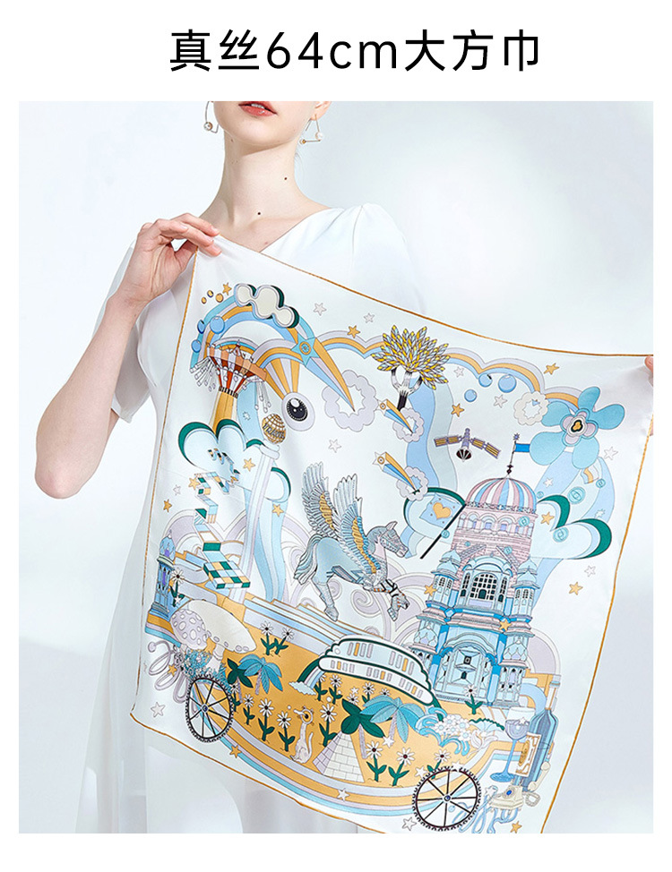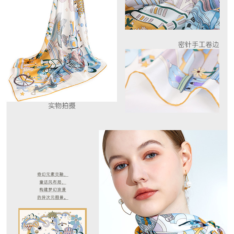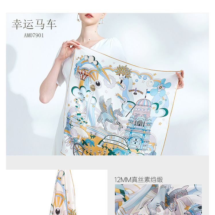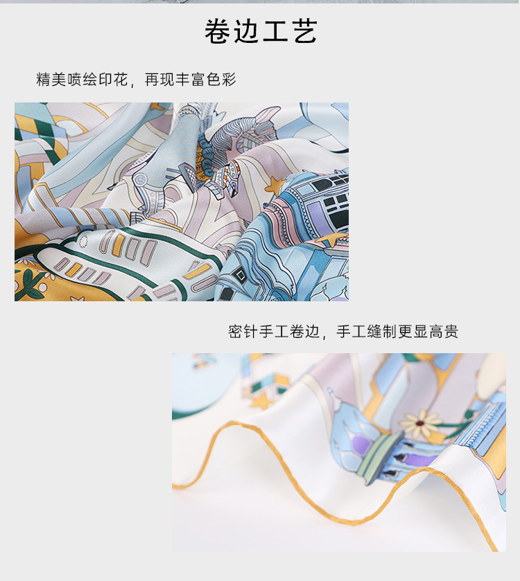 新品绢糸シルクスカーフ14ムミツイルデジタルプリント90シルクスカーフ女性手巻き