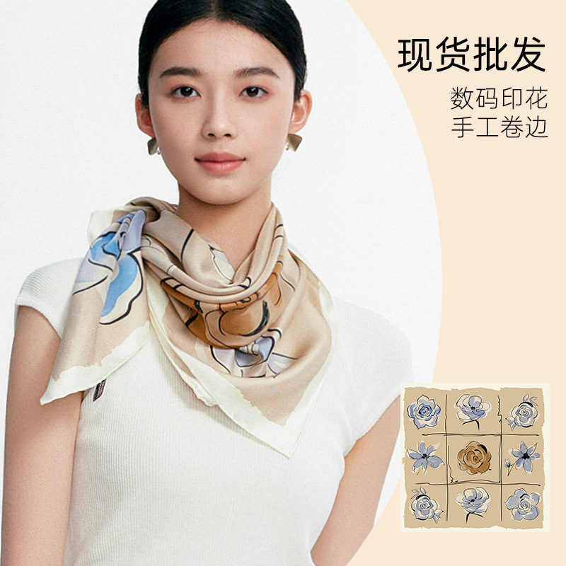 25年新作シルクスカーフ、厚手の100%桑絹スカーフ、卸売スポットソース工場が自主的にデザイン