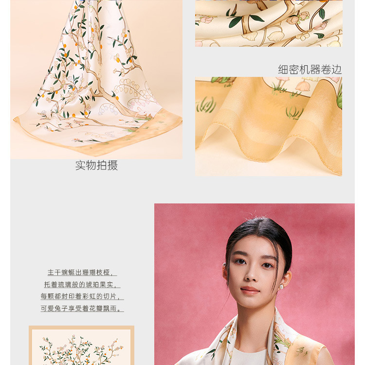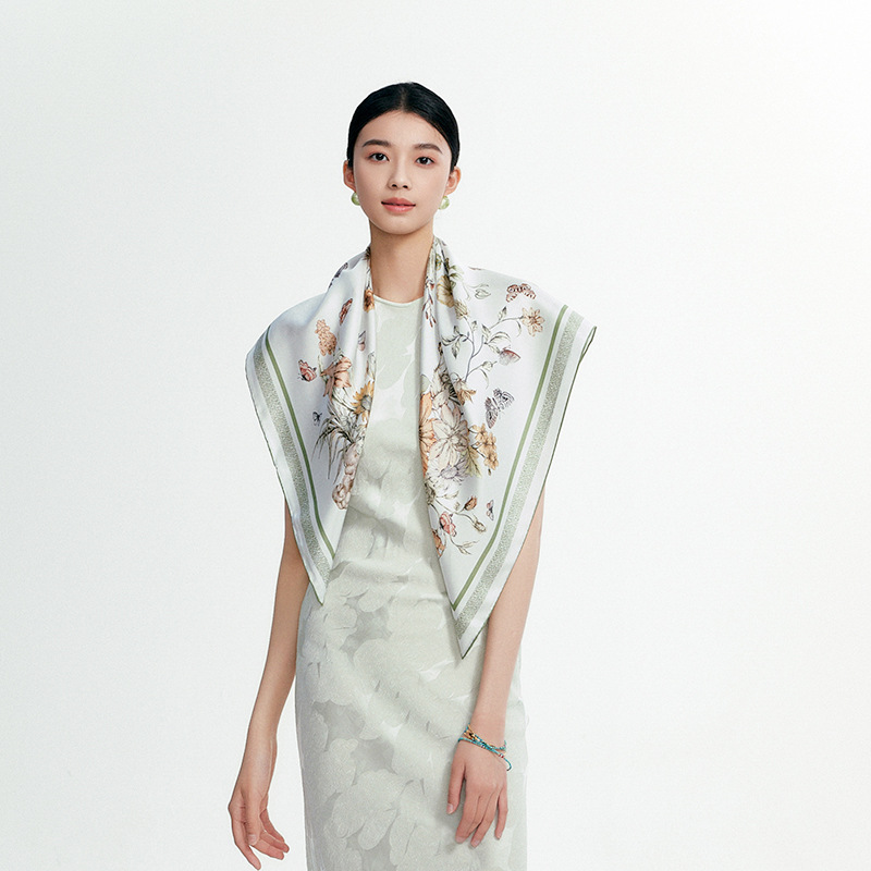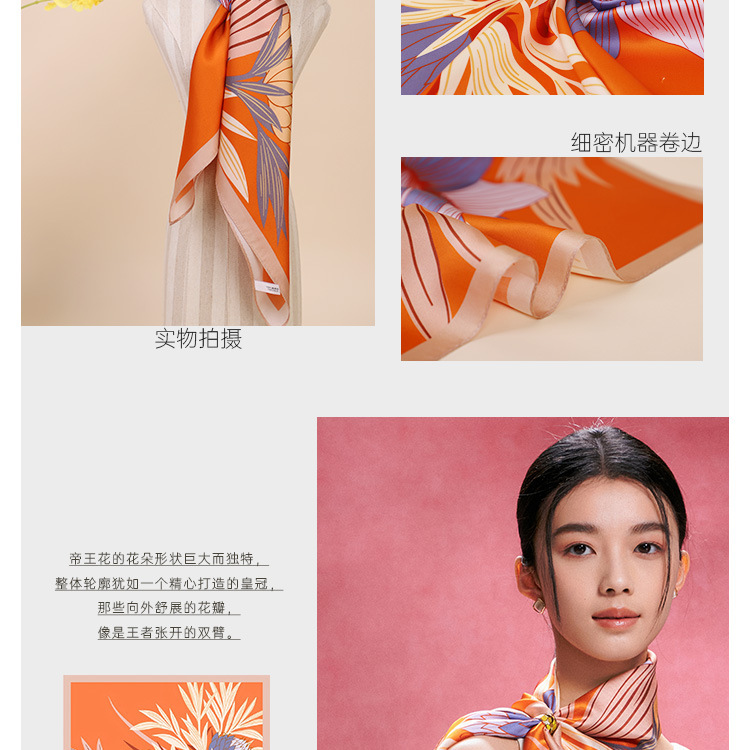 64×64cmシルクスカーフ、桑蚕糸スカーフ、企業ギフト、中国風花柄スカーフ、結婚式の記念品