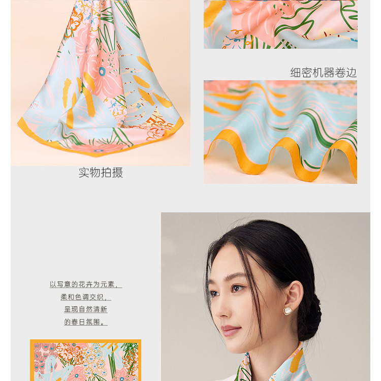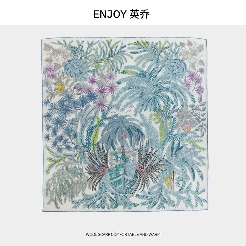 英喬スカーフオリジナルシルクウールスカーフ65×65cm春物在庫卸売手作り植物花柄デザイン