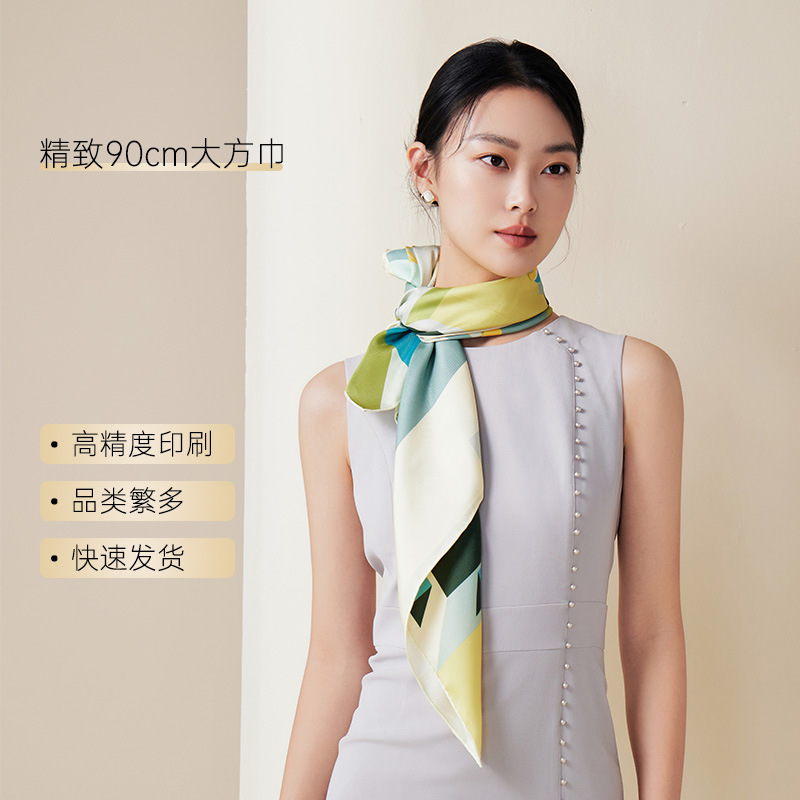シルクレディースビジネススカーフ デジタルプリント 高級ギフトスカーフ 桑蚕シルク 中小判スカーフ 工場在庫