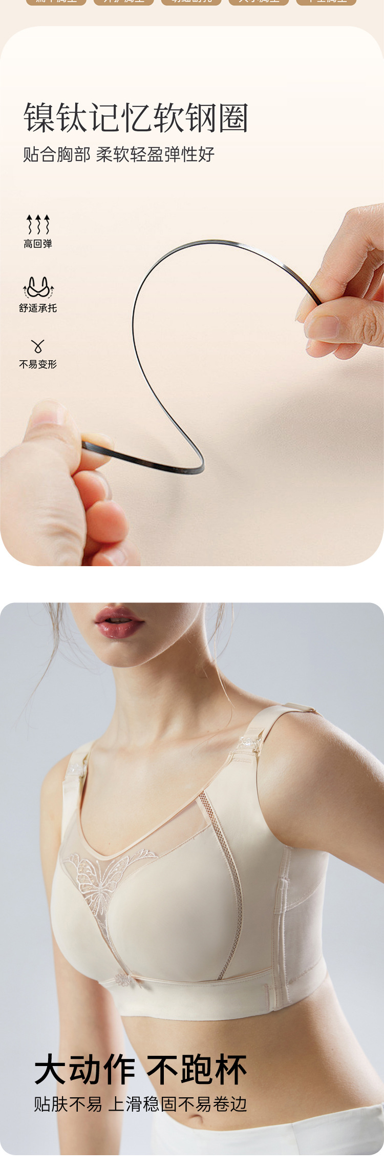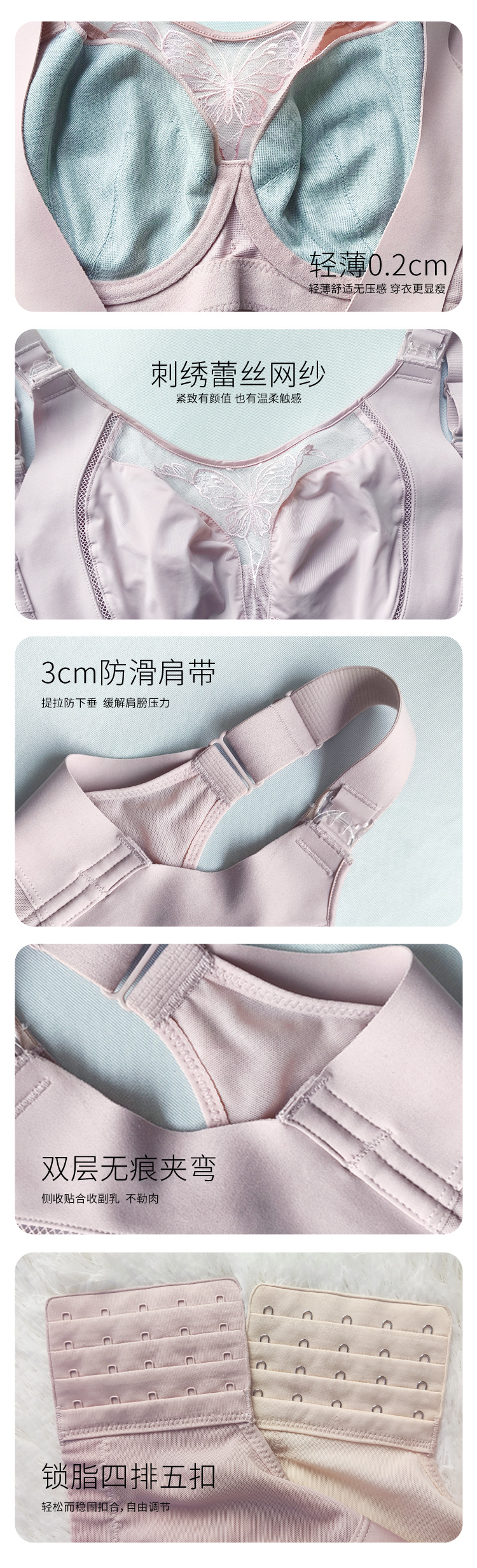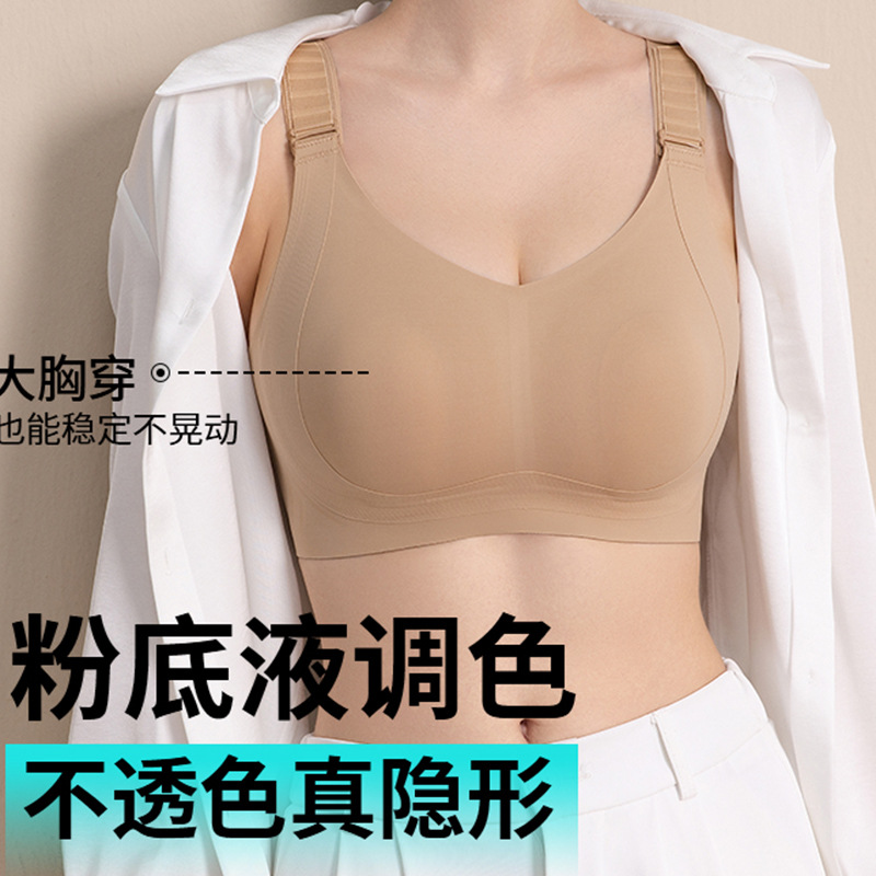 艾無限無鋼輪無痕調整型垂れ下がり防止副乳大胸顕小大サイズブラジャー全カップ薄金