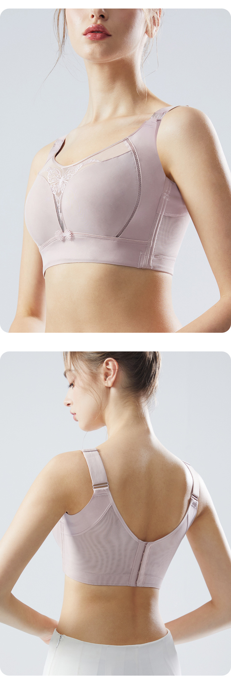 調整可能な下着、ソフトスチールリングブラ、通気性、プッシュアップ、ハイサイドレース、脇の肉を引き締める、夏用ブラ、胸パッド付き