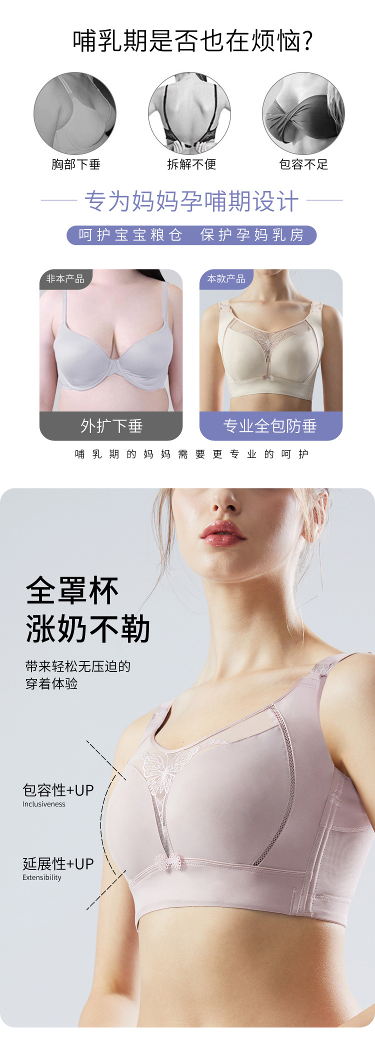 授乳中の下着の垂れ下がり防止の大きい胸は小さくて、跡のない薄いタイプの柔らかい鋼の輪の全カップは乳をあげて集まって副乳の大きいサイズを収めます。