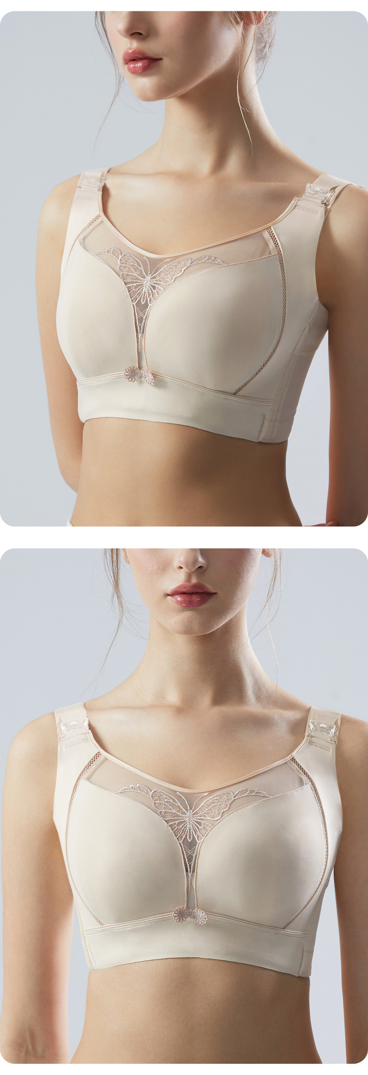Kkay調整型下着の女性は、胸を閉じて垂れ下がるのを防ぐために、薄いブラジャーを閉じます。