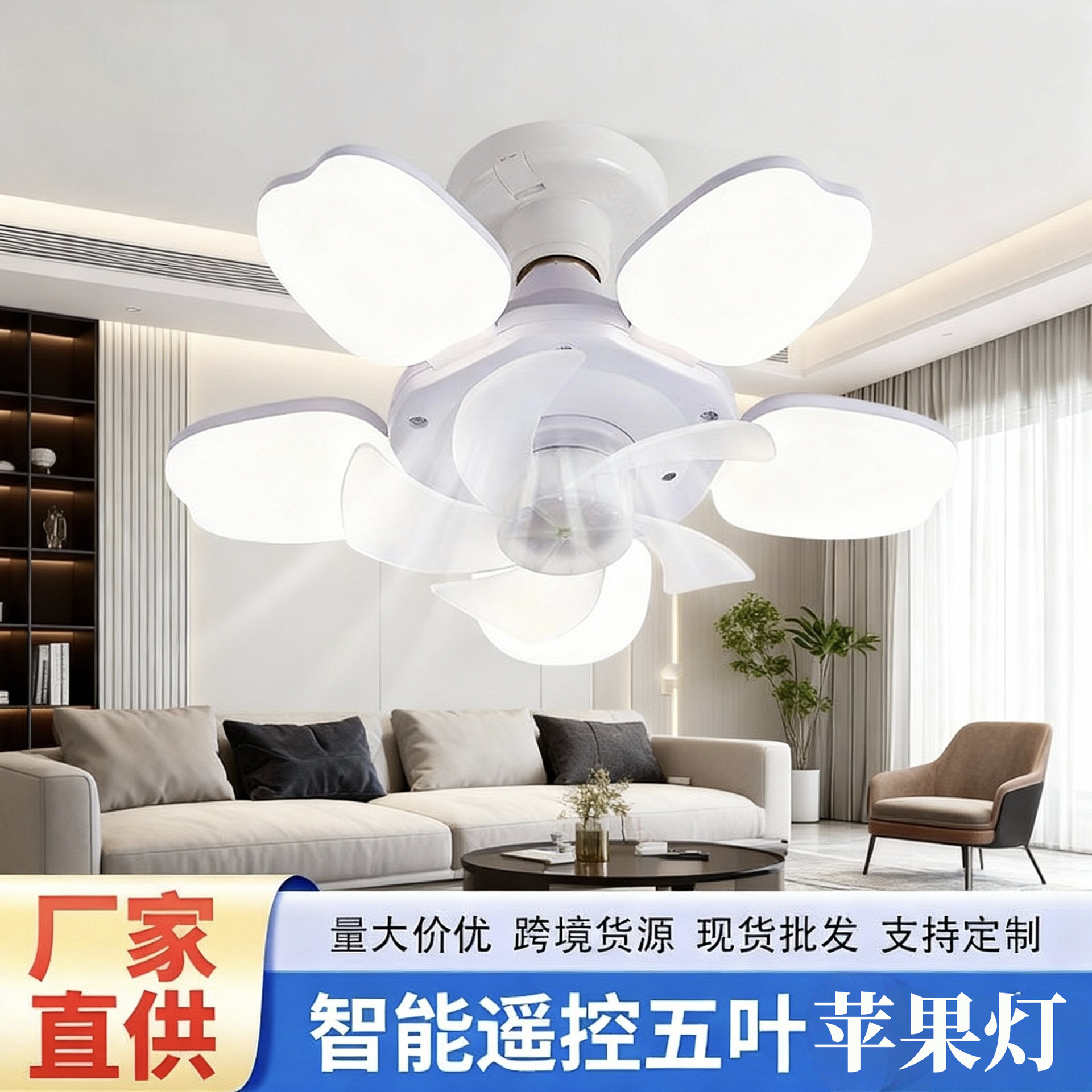 新款跨境五叶苹果风扇灯卧室客厅吸顶灯宿舍现代吊扇灯LED电扇灯