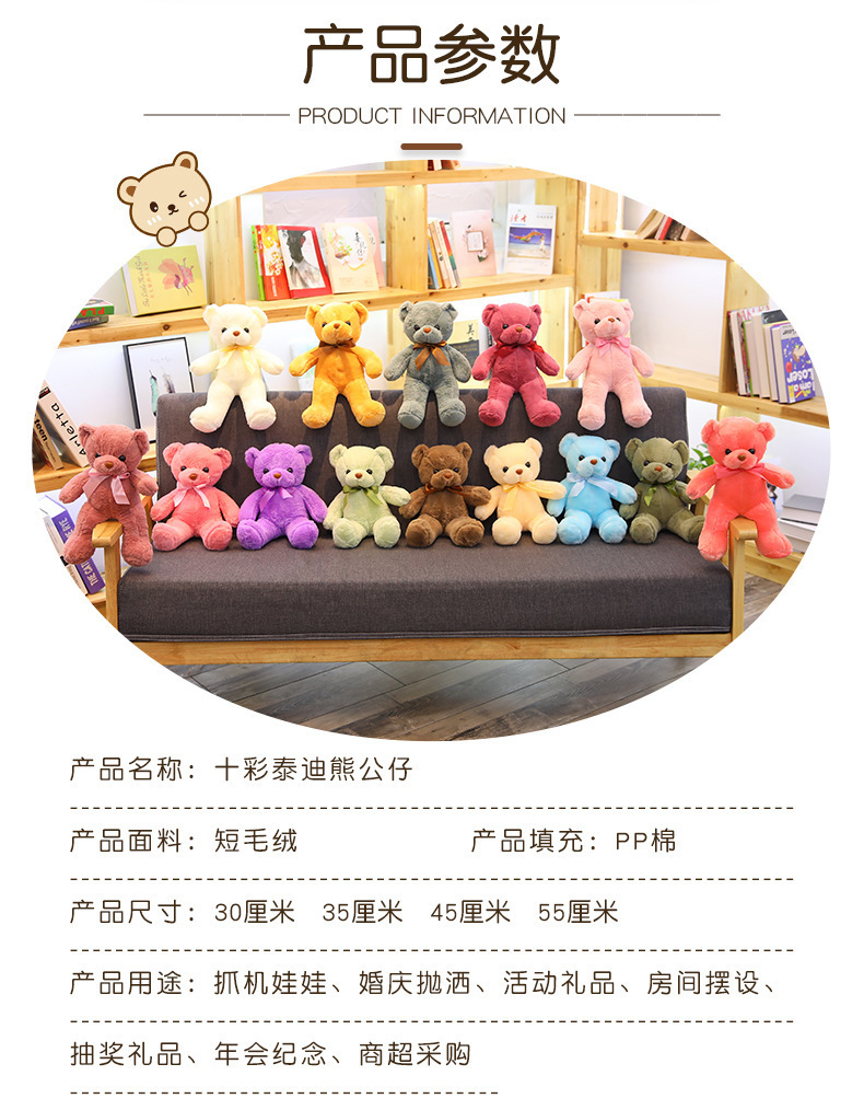 彩色泰迪熊公仔多彩熊毛绒玩具熊玩偶布娃娃抱抱小熊活动礼品玩偶