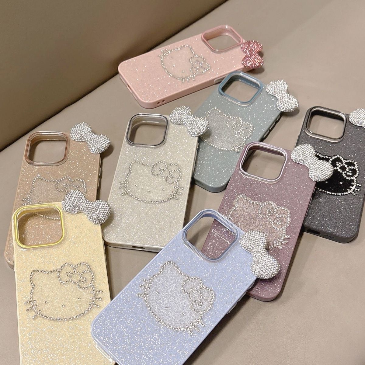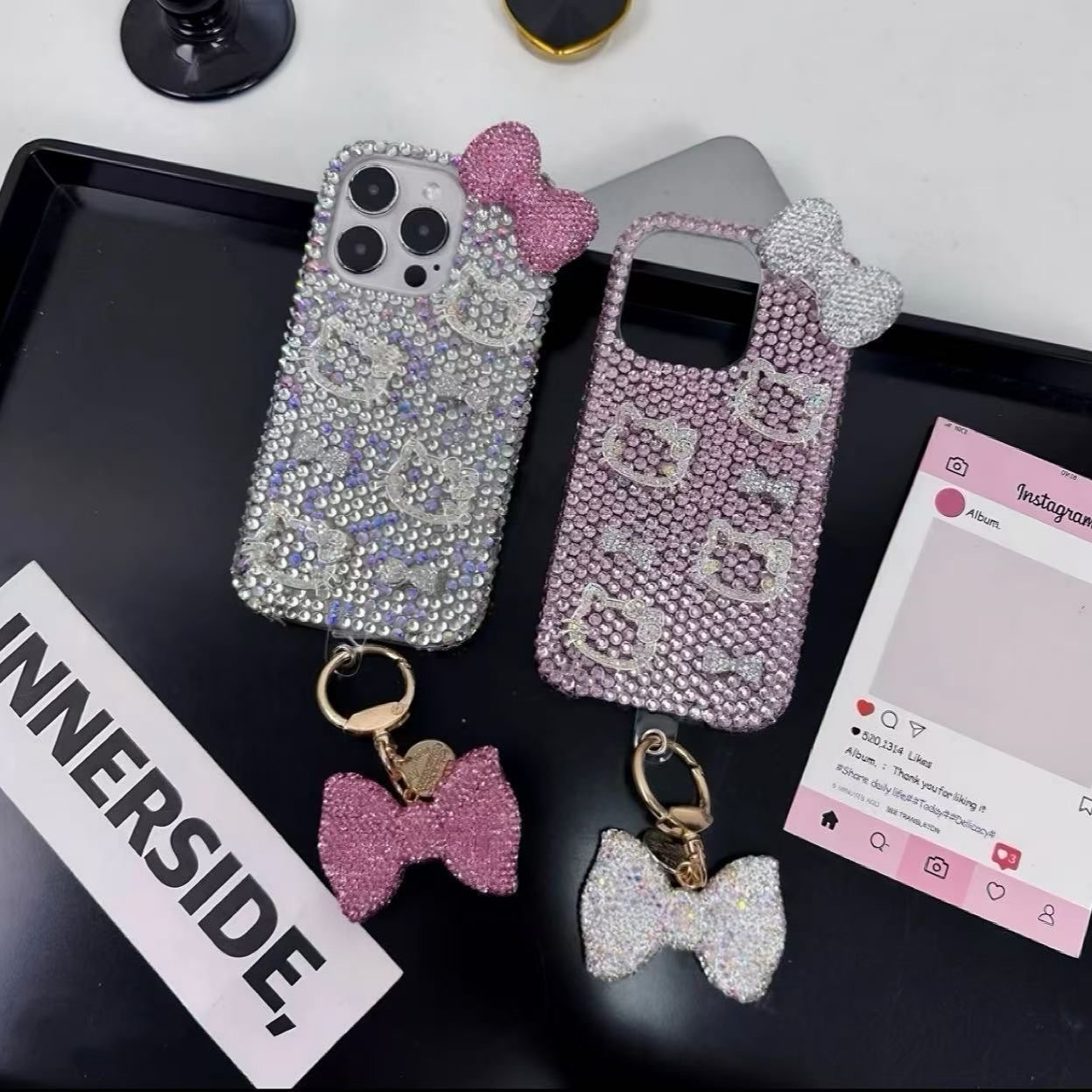 新款镶钻hellokitty猫咪饰品爱心kt猫合金手机壳饰品发饰材料配件