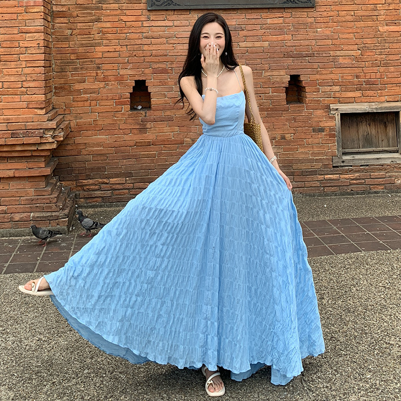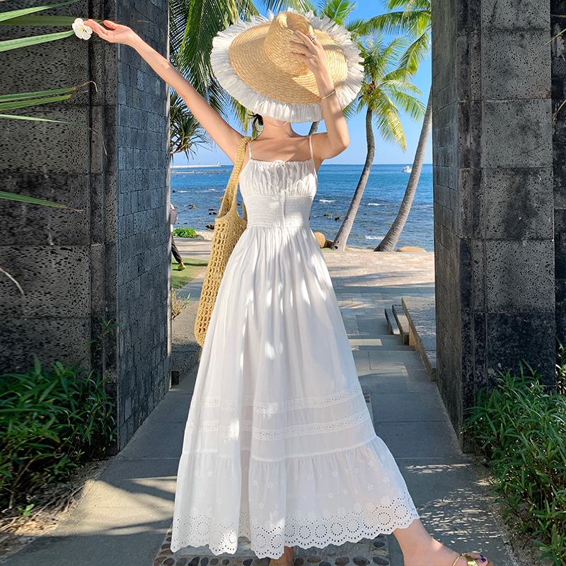 フレンチレトロハイエンド気質ホリデーロングスカートウエスト妖精スカートアイランド着用サスペンダードレスビーチスカート