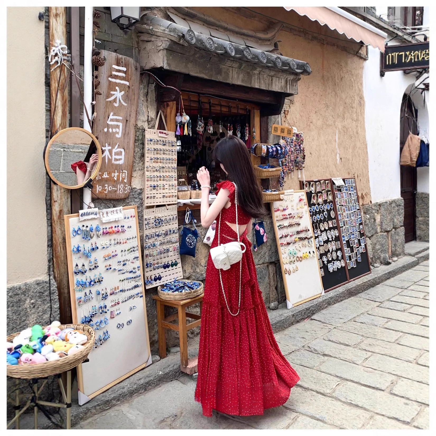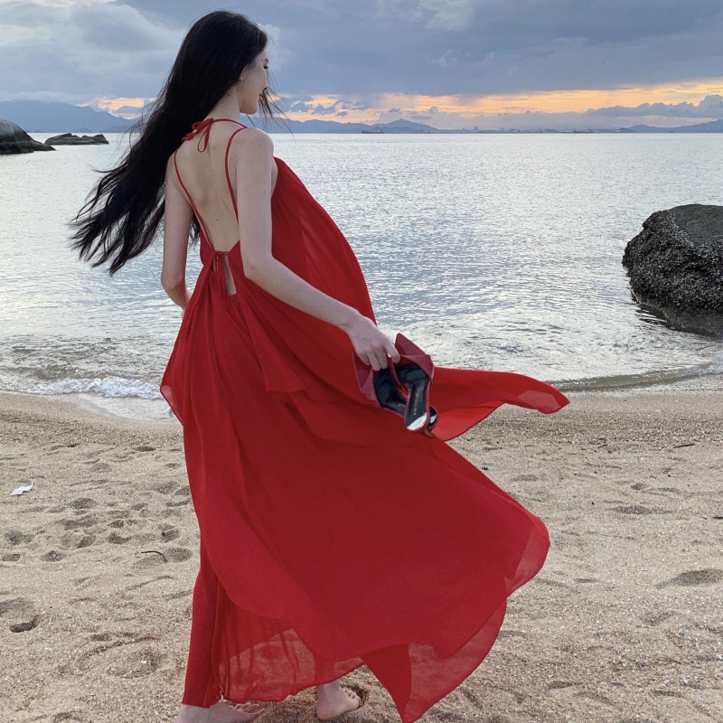 海边度假露背挂脖吊带连衣裙女三亚旅游穿搭拍照很仙的超仙沙滩裙