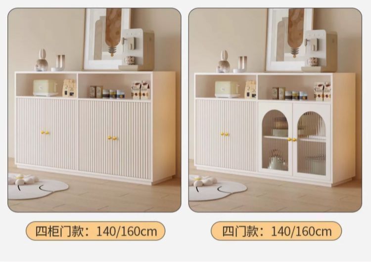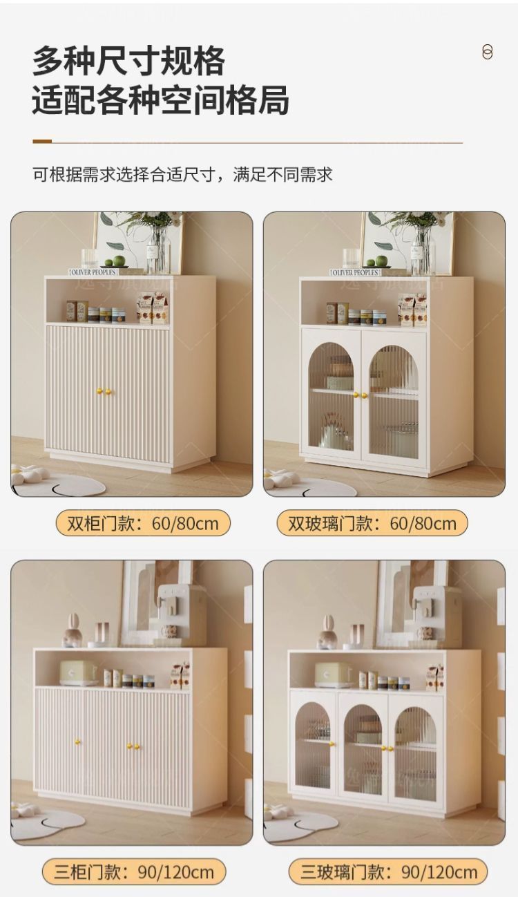 サイドキャビネット家庭用リビングルームのお茶キャビネットクリーム風壁に寄りかかっています。