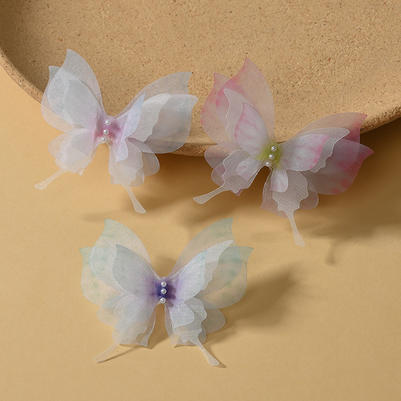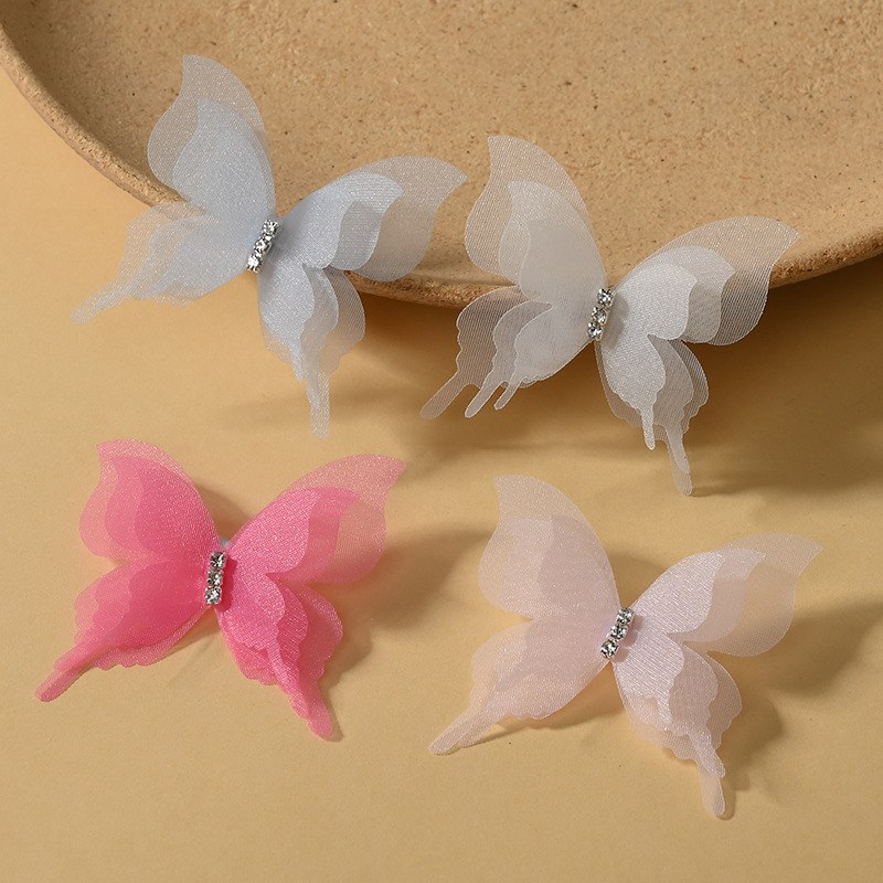 (全款)新5cm双层立体薄纱蝴蝶翅膀手工DIY古风头发夹配件针材料