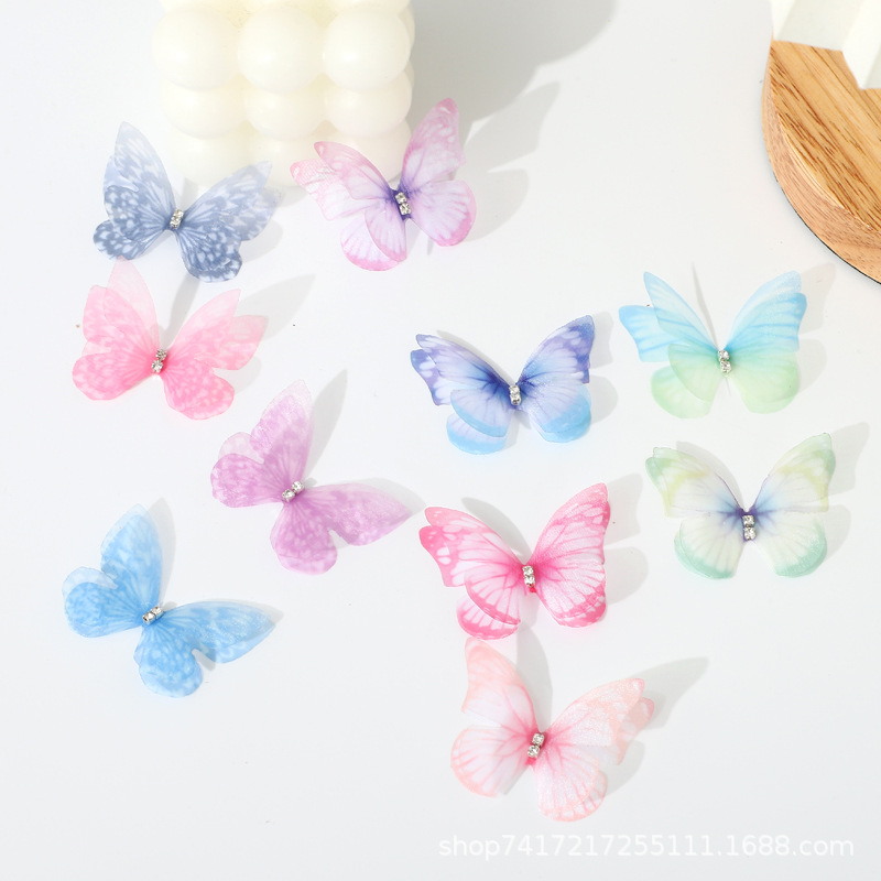 二重立体蝶欧根紗蝶diy髪飾りアクセサリーウェディングベール飾り薄紗蝶
