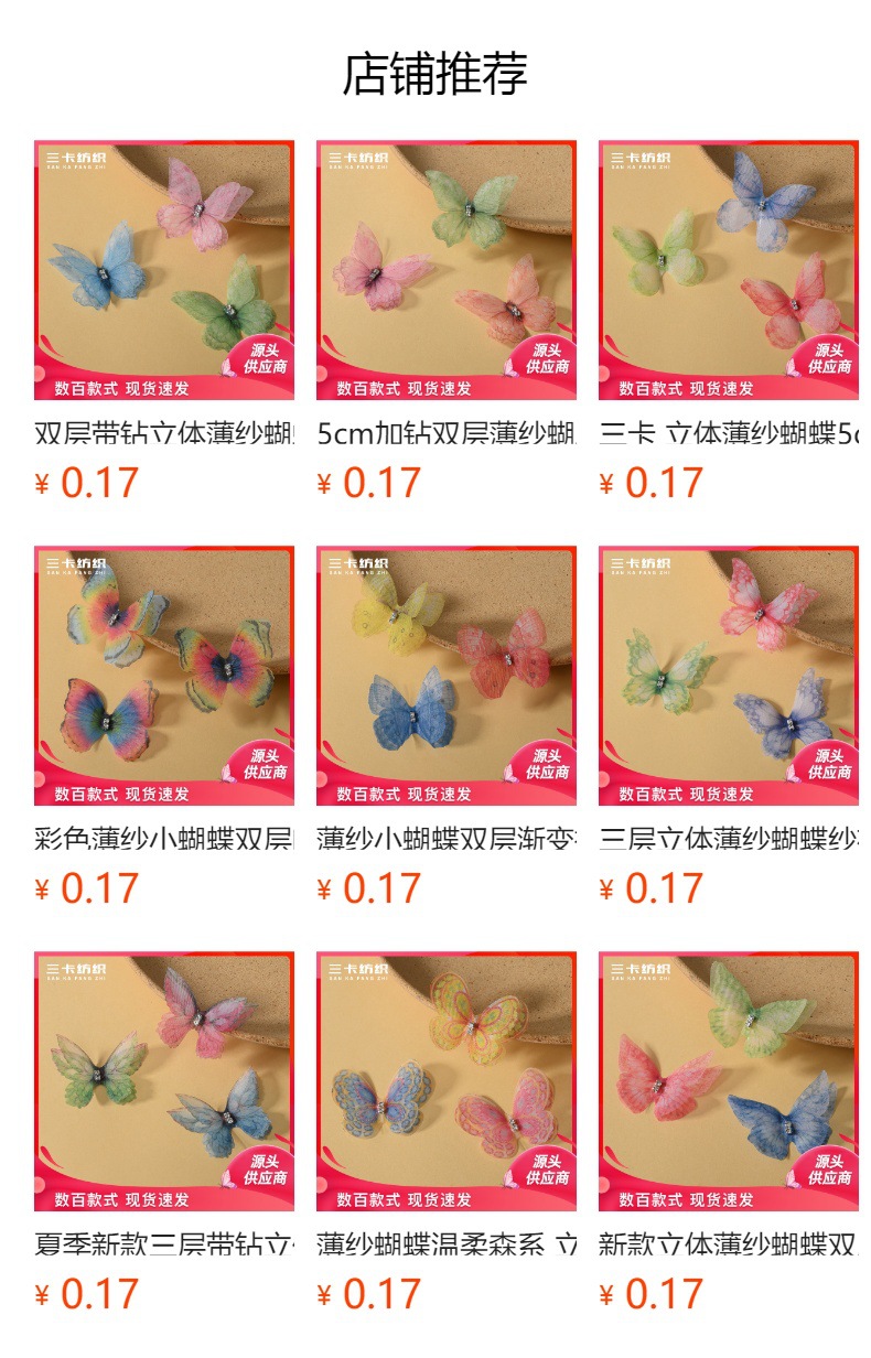 80種類の図案二重薄紗蝶帯ドリル布芸立体紗蝶アクセサリーアクセサリー卸売り
