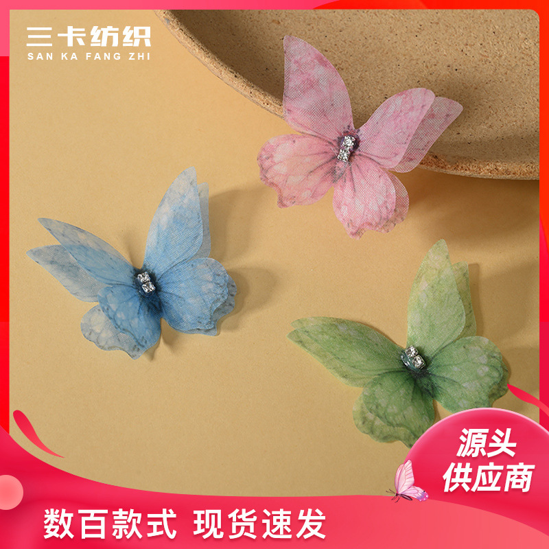 薄紗蝶三層ドリル布芸立体糸蝶網糸蝶アクセサリーアクセサリー卸売り