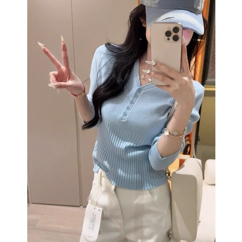2025早秋新款减龄气质海军领针织衫甜美韩系收腰修身针织长袖上衣