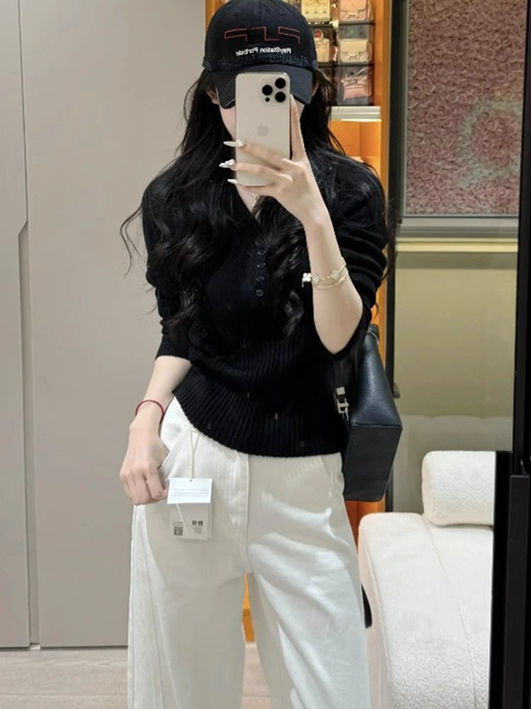 小衆の独特な上着の女性の早秋2023新型vネックのニットの冬の短い洋風のセーターのカーディガンのコート