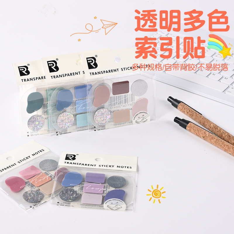 カラーn回貼りシンプル付箋紙付箋紙透明付箋卸売り粘着創意学生メモpet