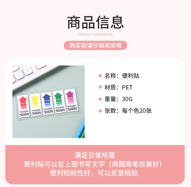 pet便利贴定制方向指示箭头平头索引贴学生创意标记贴备忘记事贴