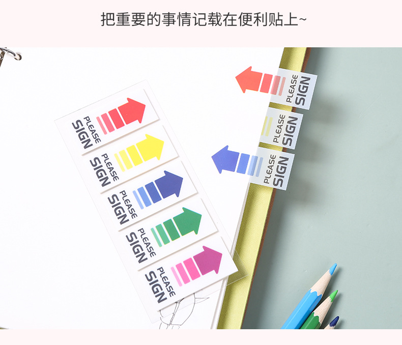 現物付箋シール方向指示付箋矢印平頭インデックス貼りカラーpet付箋ラベル卸売り