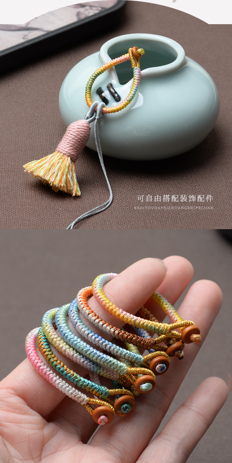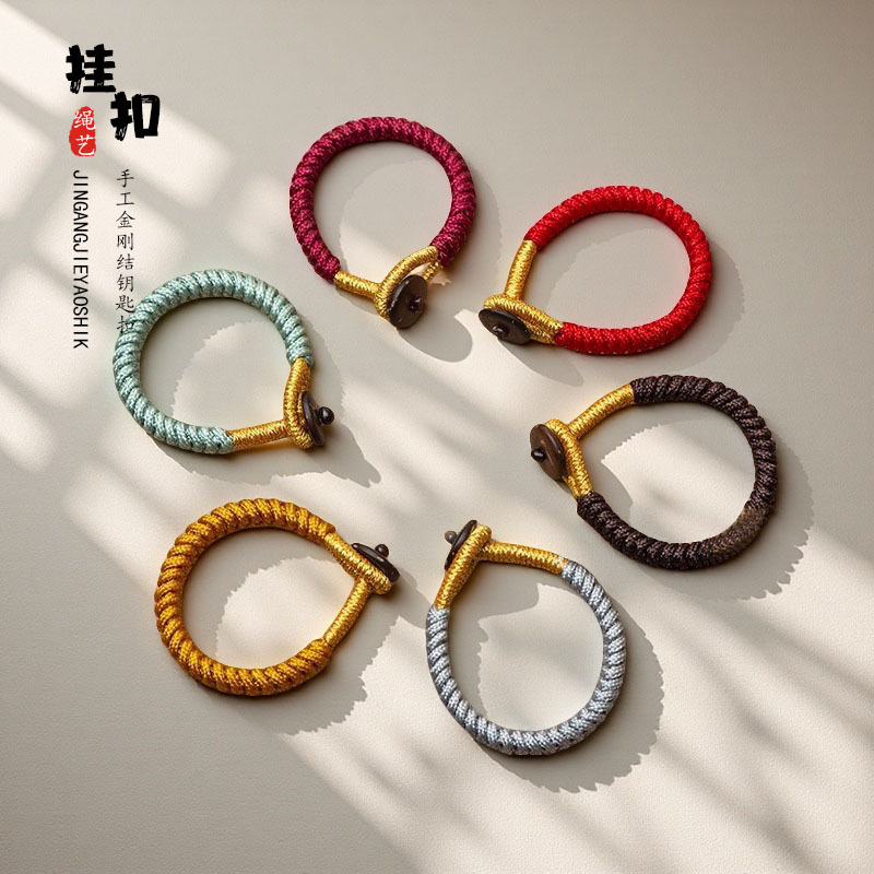五彩色编织金刚结钥匙扣diy包挂绳子手把件半成品挂绳指环扣配饰