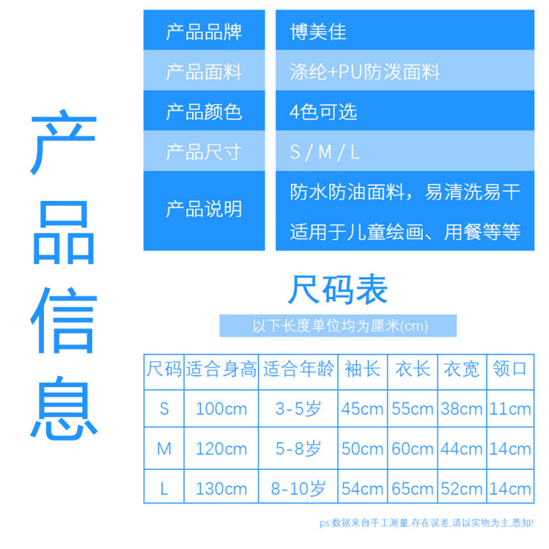 子供絵画防水エプロンmヤード逆着カバー長袖絵画絵画食事よだれかけ美術用品