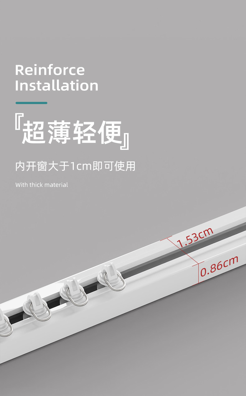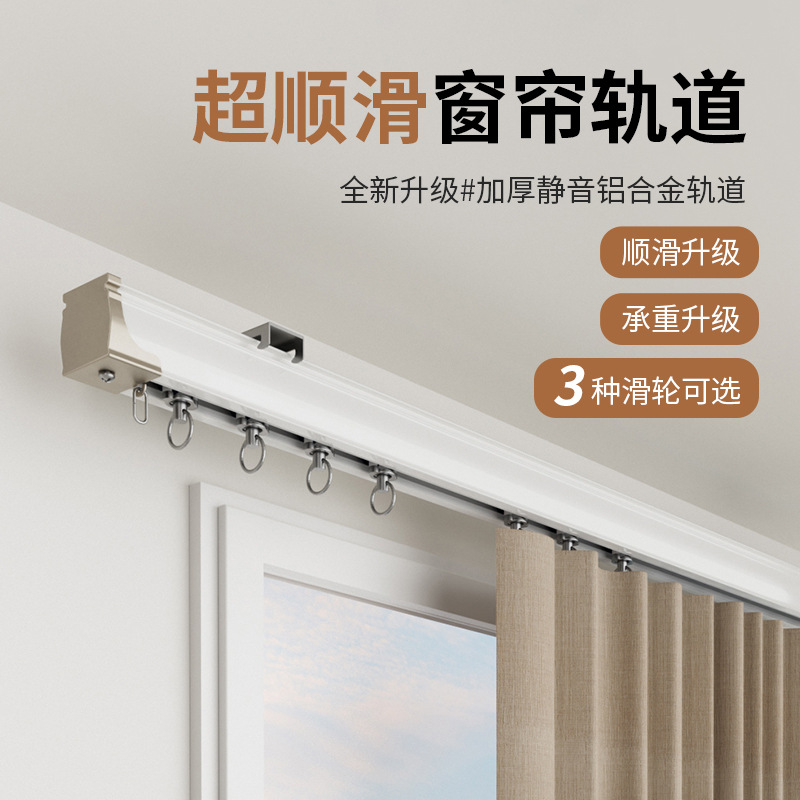 特厚2.6mmカーテンレールアルミ合金カーテンレール直レールトップに静音レール側にシングルレールを装着