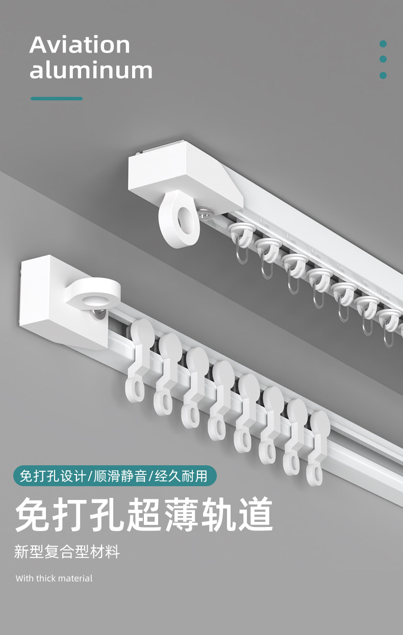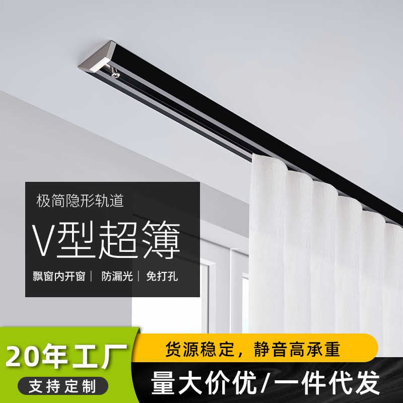 穴なしカーテンレール天井装消音スライドレールv型超薄フック式スライドアルミ合金モノレールカーテンケース