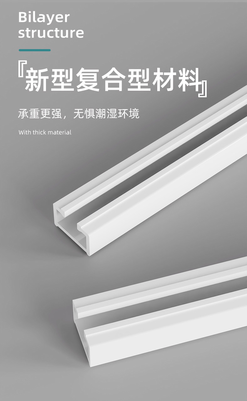 中商カーテンスライドレール滑車双軌道カーテンボックスレール一体穴なし特厚静音カーテンレール