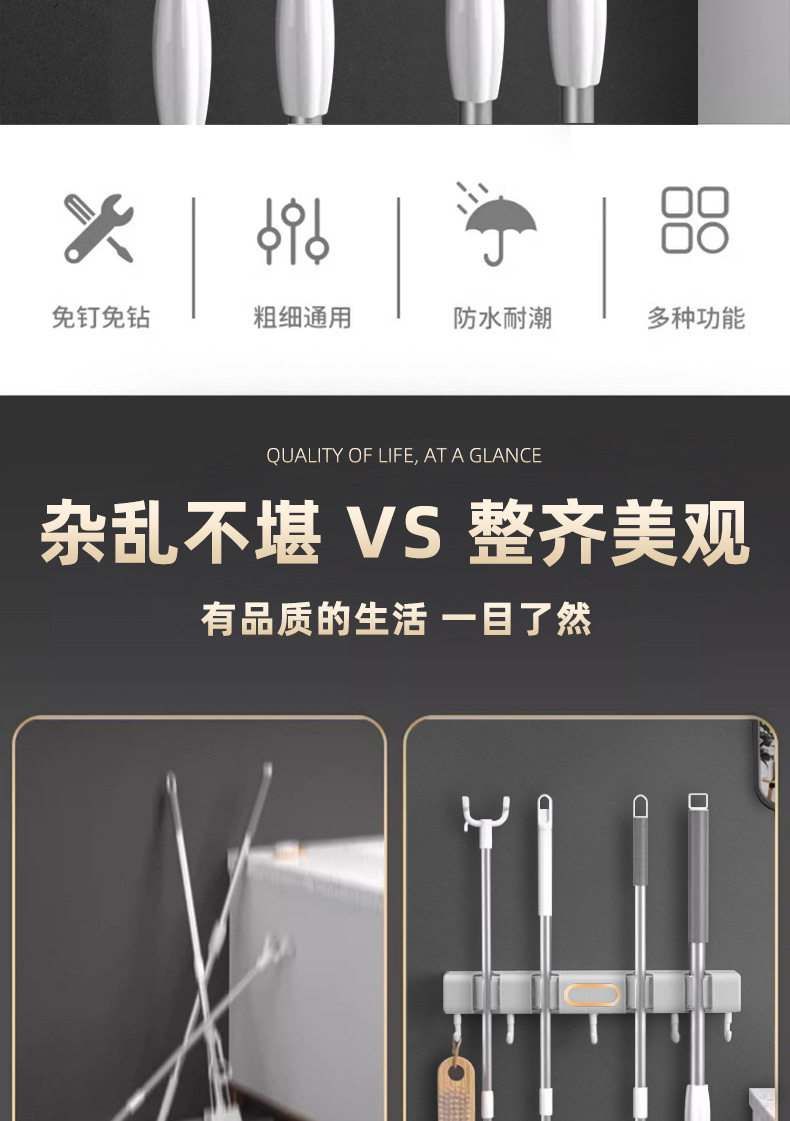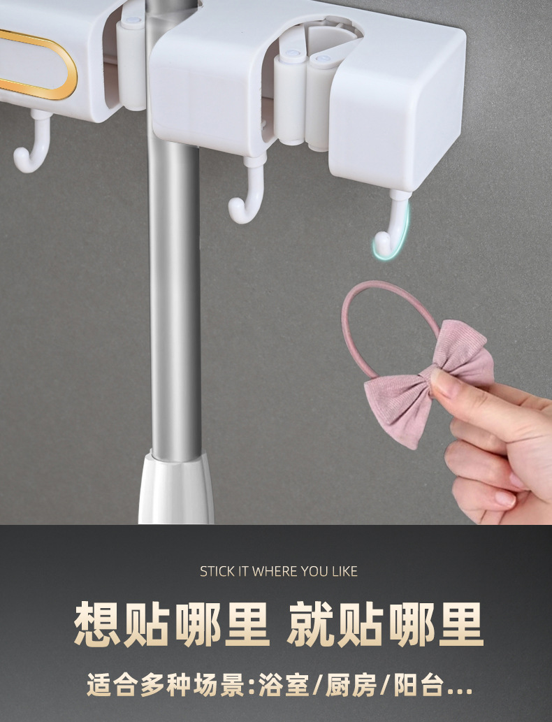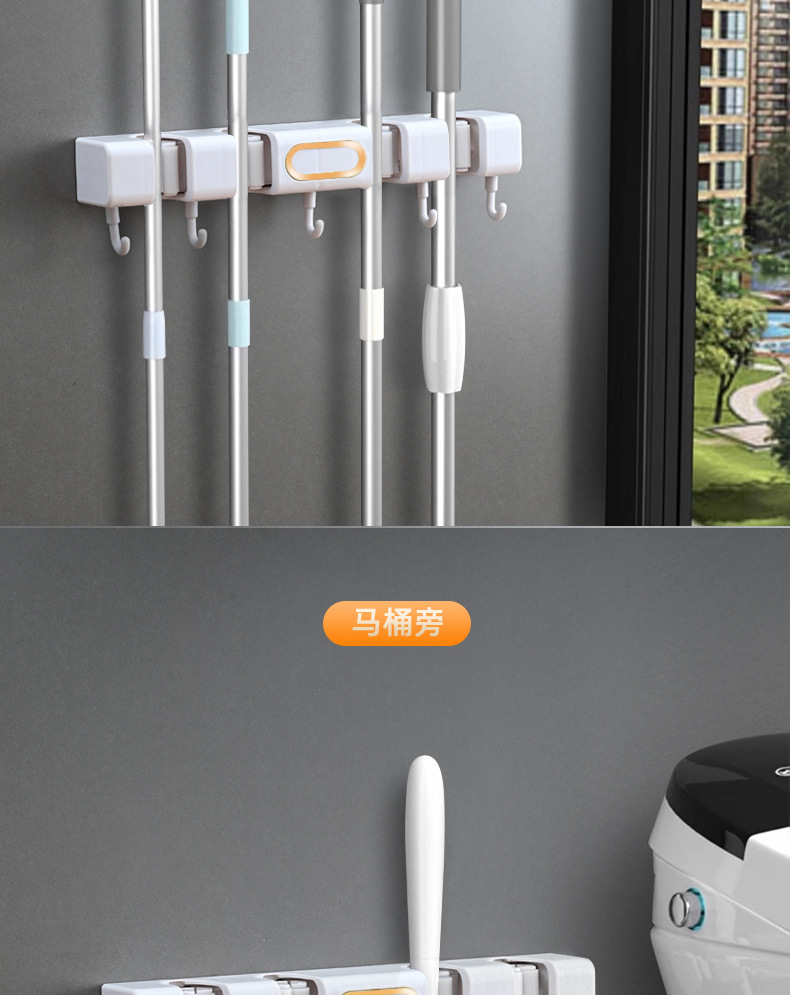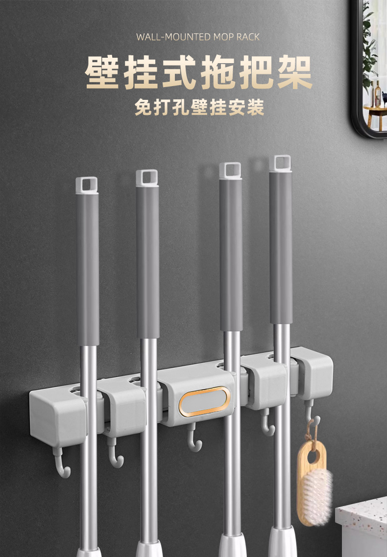 モップホルダー 壁掛け式 穴あけ不要 ハンガー 布固定ラック 浴室 バスルーム ドア後ろ収納ラック