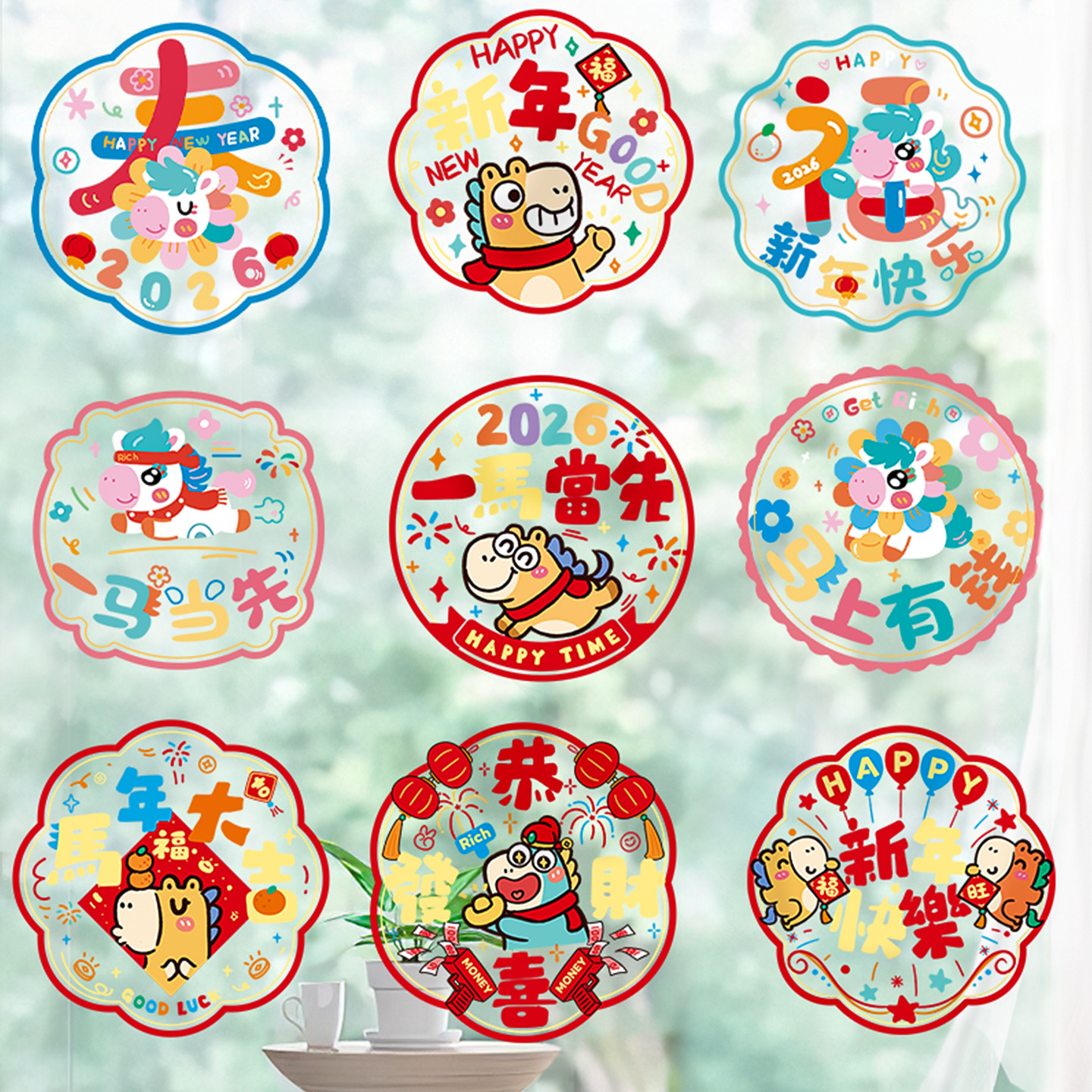 2026新款新年窗花静电贴过年马年春节装饰品橱窗玻璃贴福字门贴画