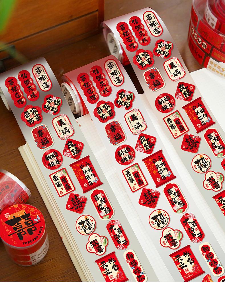 結婚の小さい喜の字のステッカーのシールの結婚祝いの用品の果物の喜糖の箱の卵は結婚する部屋の装飾の配置を貼ります。