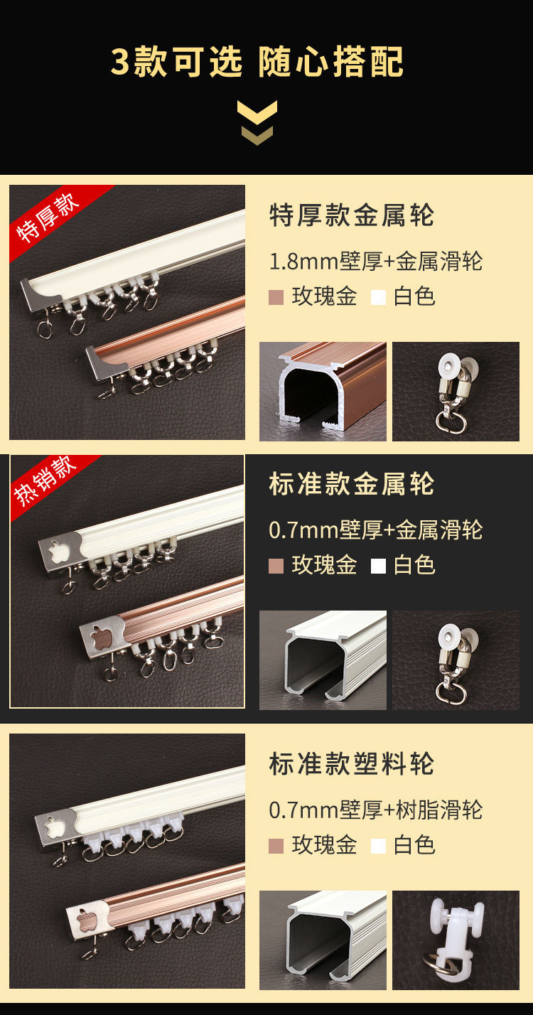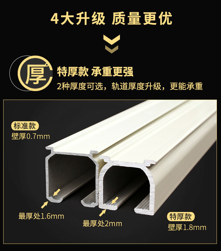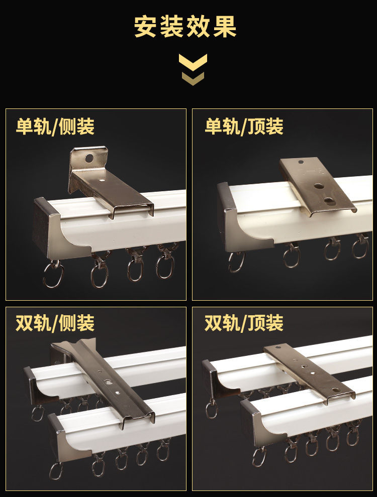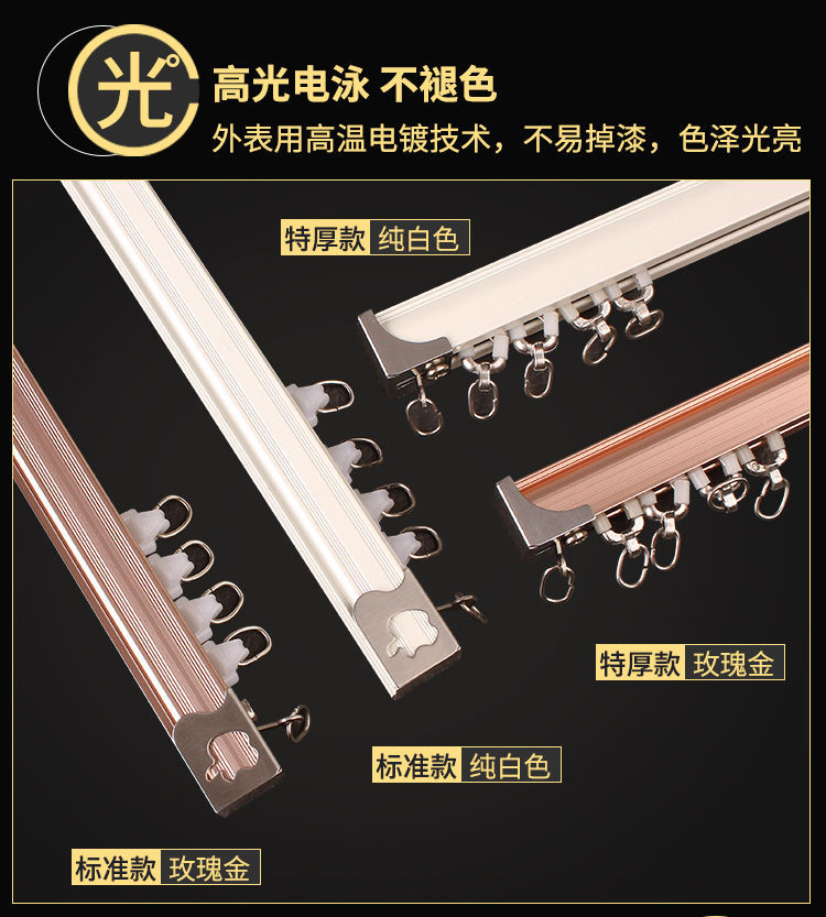 カーテンレール直軌道シングルダブルレールのトップ側にカーテンロッドアルミ合金を入れて静音カーテンレール工事軌道を厚くする