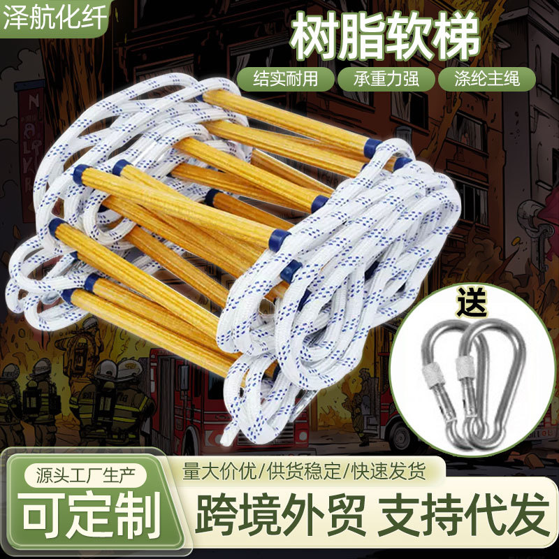树脂逃生梯 家用消防训练高空作业救援逃生防滑耐磨尼龙树脂绳梯